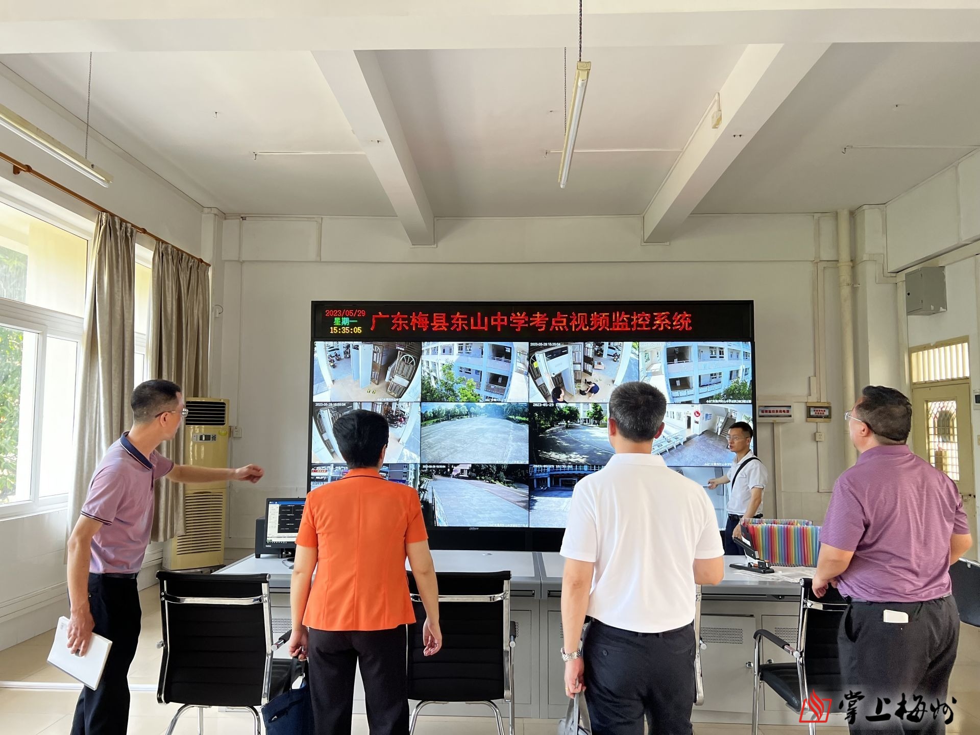 在市教育考试院,督查组对高考试卷运送、保密、人员配备和安全保障等工作落实情况进行现场督查。在梅县东山中学,督查组询问了解高考各个环节的准备情况,现场查看智能安检门、视频监控室、监控设备运行等情况。