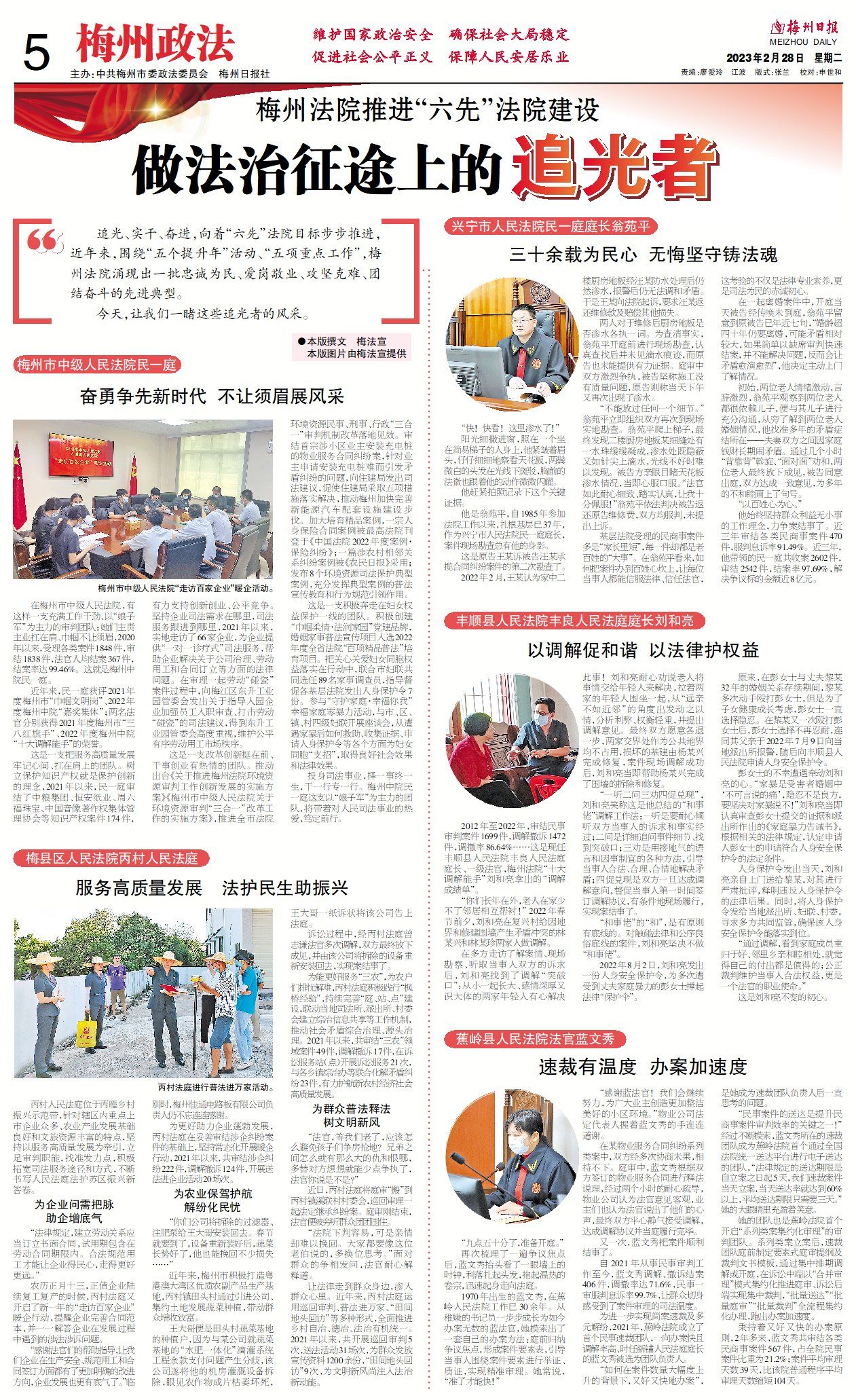 追光、实干、奋进,向着“六先”法院目标步步推进,近年来,围绕“五个提升年”活动、“五项重点工作”,梅州法院涌现出一批忠诚为民、爱岗敬业、攻坚克难、团结奋斗的先进典型。