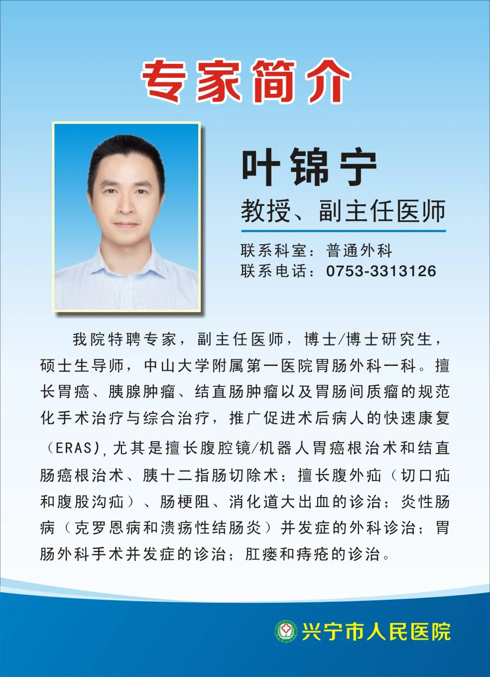 普通外科 叶锦宁教授: