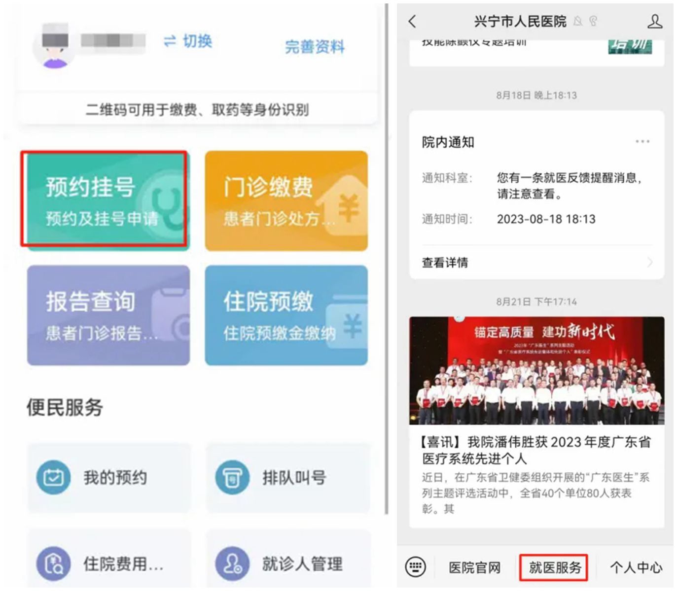 预约方式:关注兴宁市人民医院微信公众号(扫描下方二维码)进入“就诊服务”—“预约挂号”进行挂号。