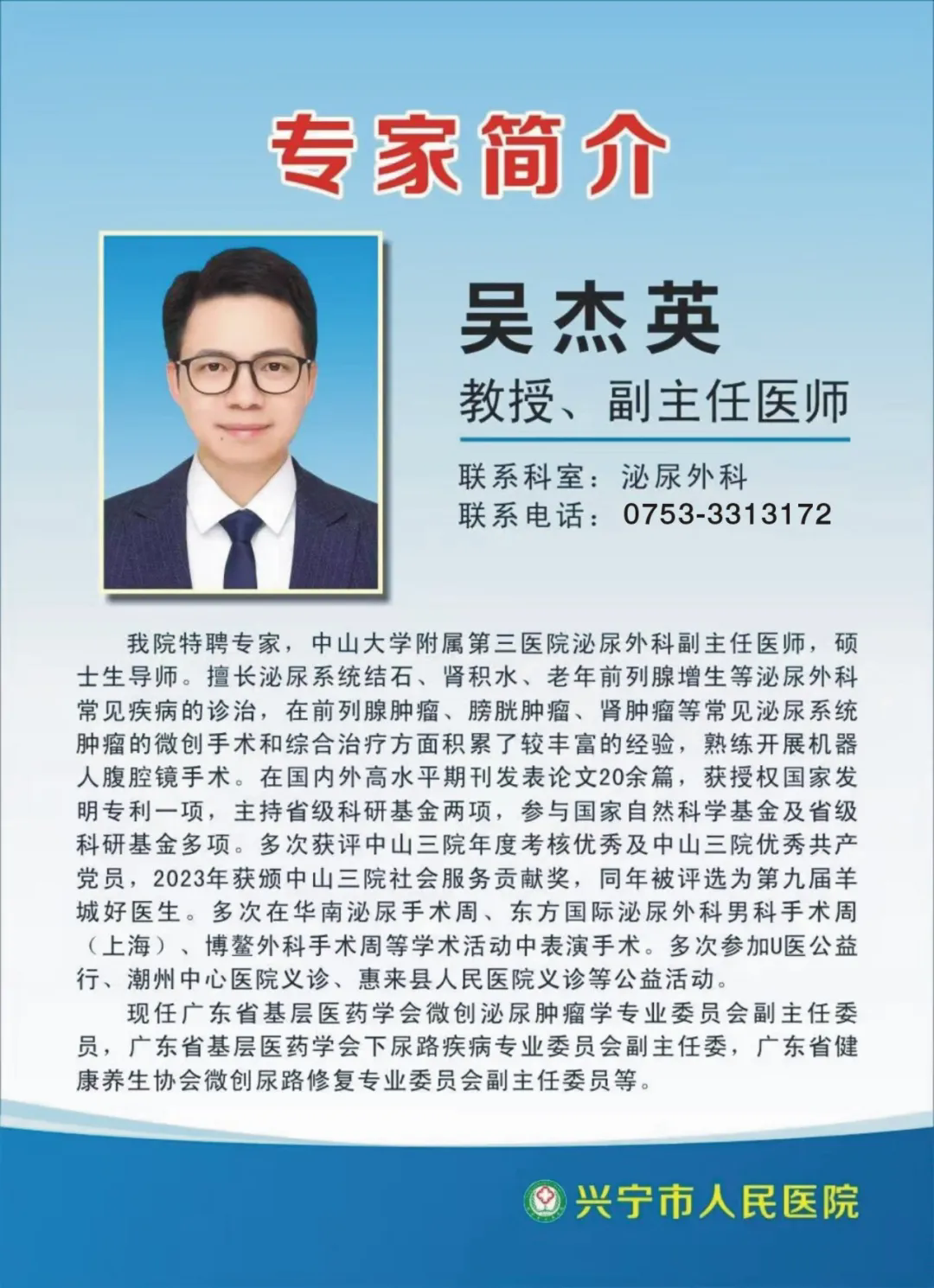 泌尿外科电话:0753-3313172
