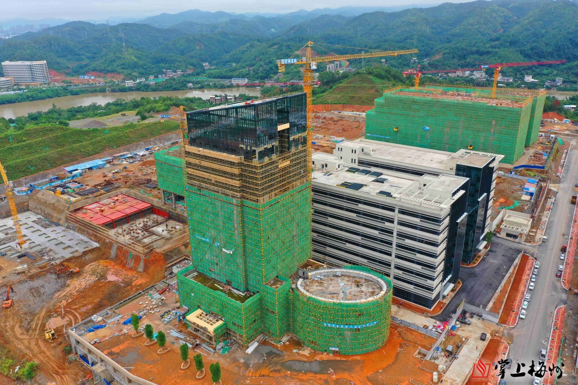 在梅州经开区梅江控股标准厂房项目建设现场,只见两栋现代化的标准厂房拔地而起,施工机械挥舞着长臂,工人们穿梭在工地上,到处是火热的建设场景。