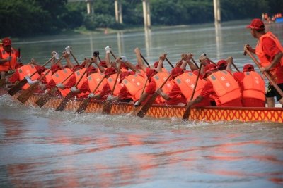 6月6日下午,韩江三河水域举办端午龙舟赛,6艘龙舟同台竞渡。