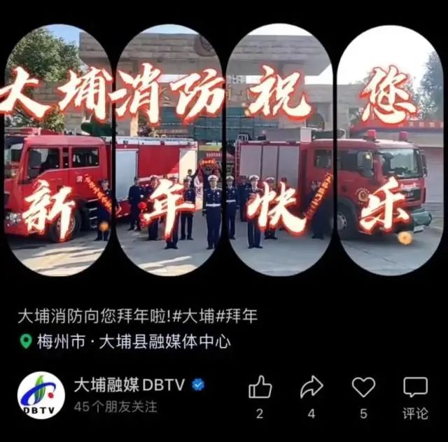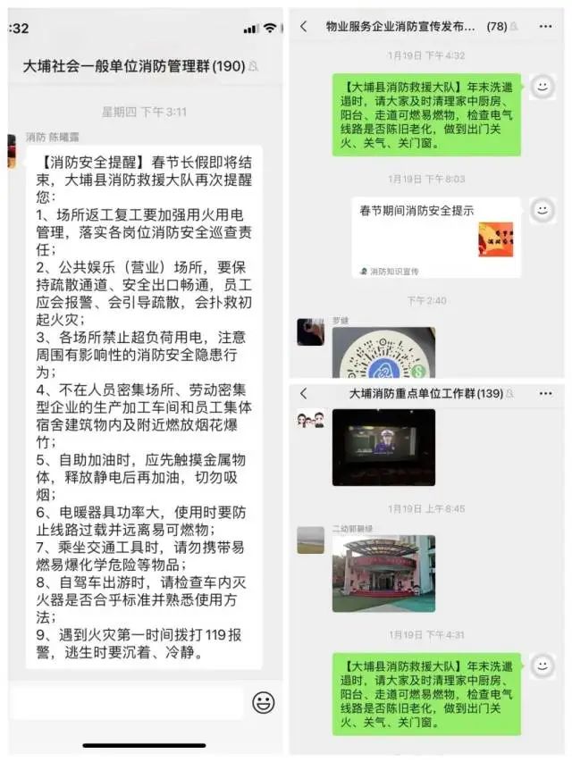 开拓新媒体领域,坚持每天利用微信平台推送假期消防科普常识和火灾警示案例,对“小火亡人”、电动车违规停放等典型消防违法行为进行警示教育;围绕春节主题,制作春节祝福、“春节我在岗”等图文在“大埔融媒DBTV”视频号播放,着力宣传消防队伍良好形象。