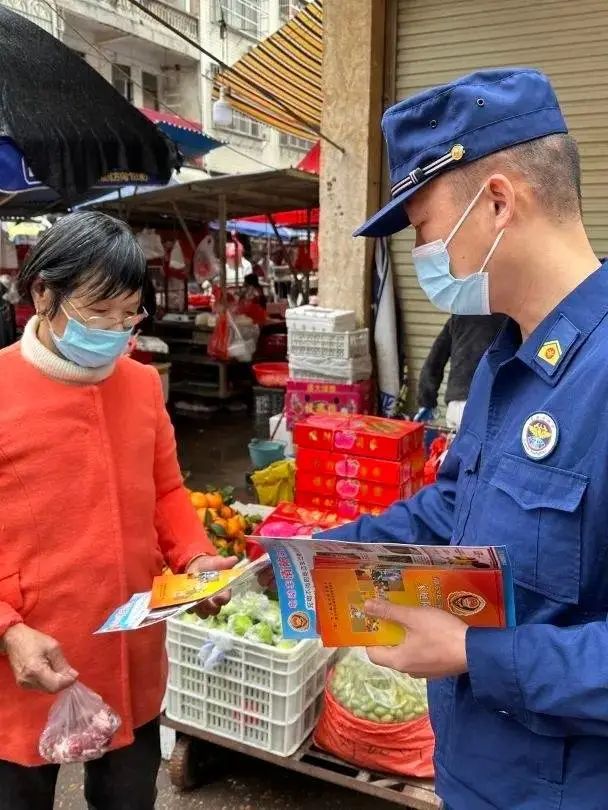 发动消防志愿者广宣传,提高常识“知晓率”。发动消防志愿者开展消防宣传活动,采取“一对一”的方式,深入人员密集场所、旅游景区等场所开展消防安全宣传活动,用通俗易懂的语言向群众讲解如何预防家庭火灾、发生火灾时如何逃生等消防常识。提醒群众春节期间禁止燃放烟花爆竹,出门后要注意关火、断气、断电,并帮助居民排查线路、厨房等重点部位的消防安全隐患,手把手教授居民如何正确使用灭火器材,为居民解答日常生活中遇到的各类消防安全问题。