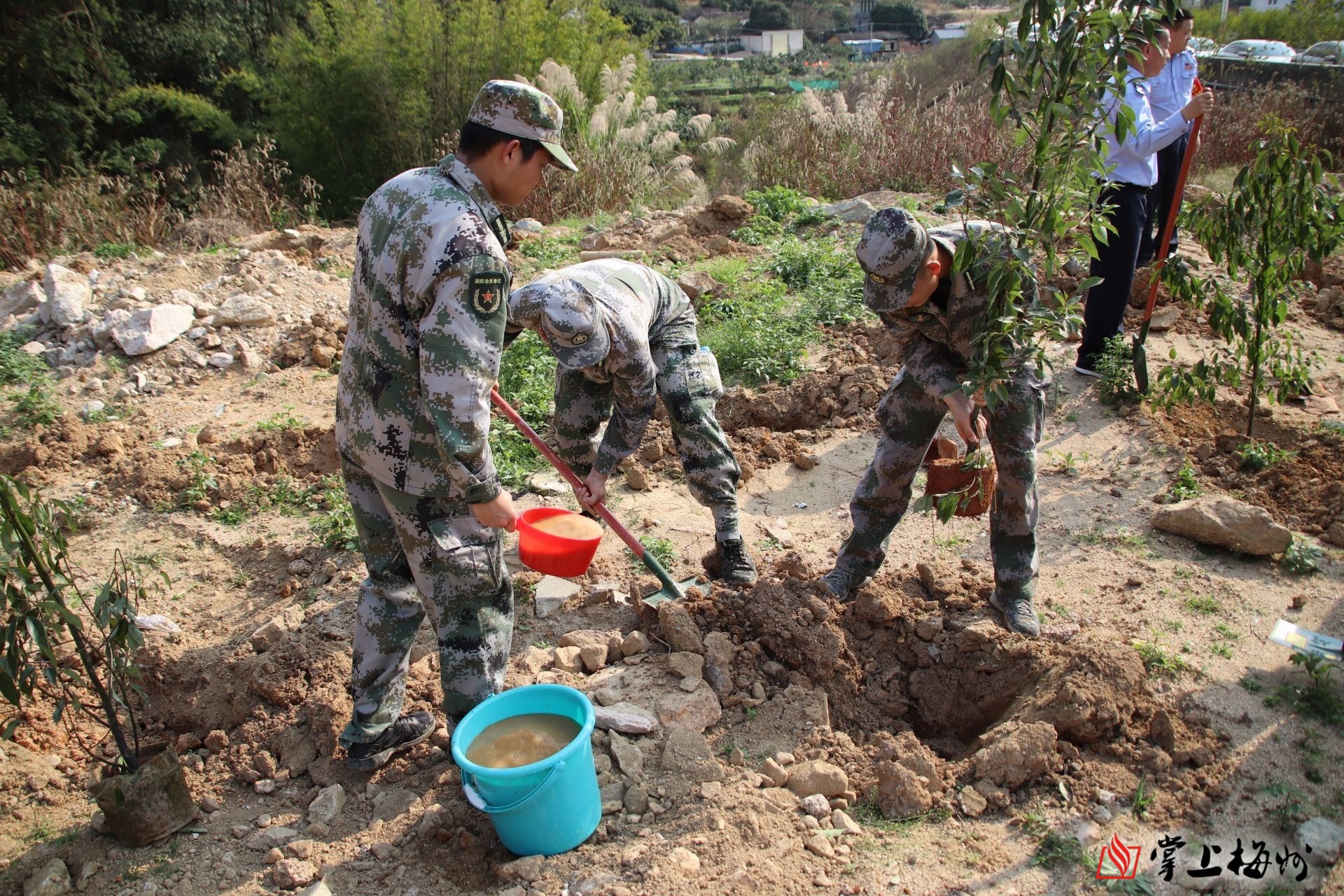 掌上梅州讯 2月13日下午,大埔县人武部积极响应县委、县政府“推进绿美广东生态建设,促进人与自然和谐共生”的号召,组织人武部干部、职工、应急队员、民兵骨干共计60余人前往湖寮镇陂头坑、三河镇五丰村参加全省推进绿美广东生态建设义务植树活动,用实际行动为大埔县生态文明建设注入鲜活“绿动力”。