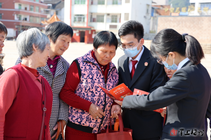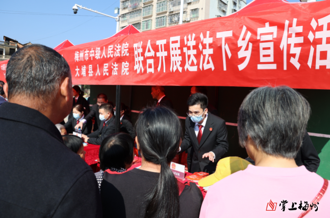 掌上梅州讯 2月17日,梅州市中级人民法院、大埔县人民法院联合大埔县公安局茶阳派出所、大埔县司法局茶阳司法所在大埔县茶阳文化广场开展送法下乡宣传活动。