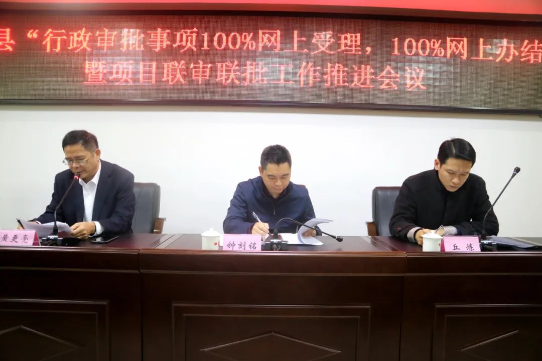 2月17日,大埔县在县政务服务中心四楼大会议室召开“行政审批事项100%网上受理,100%网上办结”暨项目联审联批工作推进会议。副县长钟刻铭,县府办、县政务服务数据管理局、县有关单位、各镇(场)相关负责人等参加了会议。