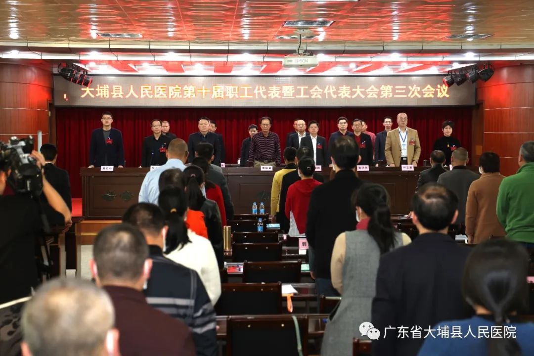最后,大埔县人民医院第十届职工代表暨工会代表大会第三次会议在铿锵有力的《国际歌》中圆满落幕!