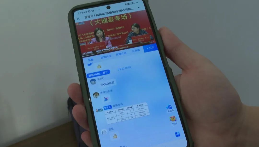 县人社局党组成员、县公共就业(人才)服务中心主任 罗玉霞:这次主要有6家企业参加“直播带岗”活动,提供了400多个招聘岗位,为大埔县重点企业解决用工需求,实现人才供需精准保障。