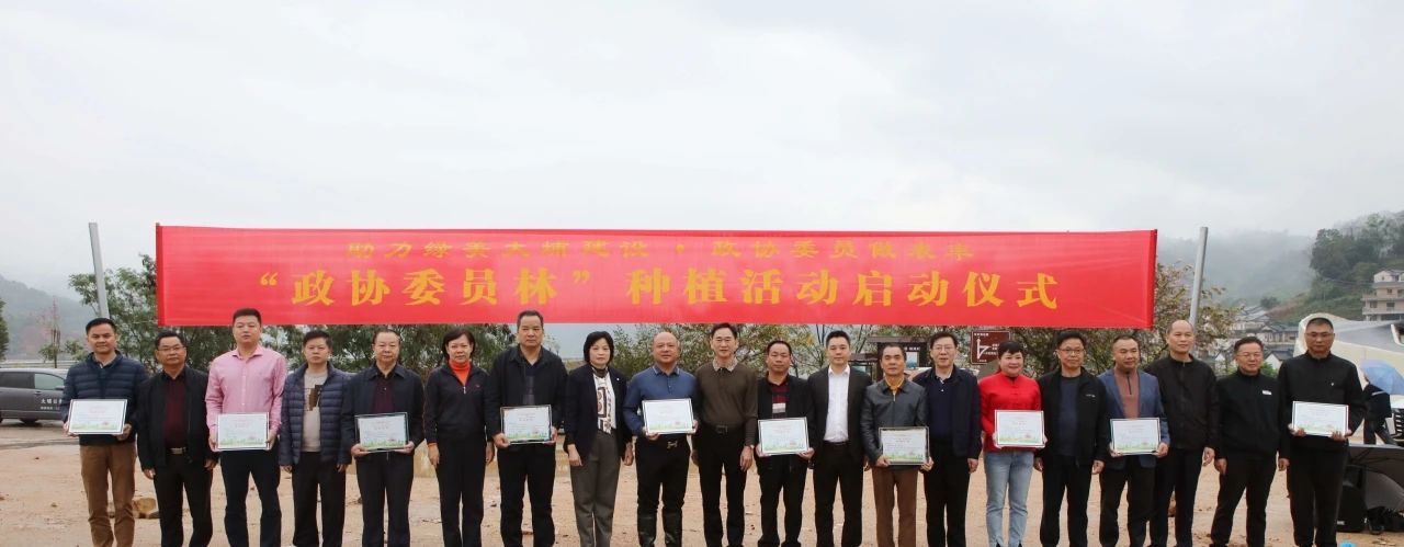在启动仪式上,陈德志、钟刻铭、张友群、刘小平、杨竹玲、刘广明、黄伟胜、严庆东、罗同兴、罗海涛分别为种植“政协委员林”捐资一万元以上和一千元以上的委员颁发荣誉牌匾、荣誉证书。随后,陈德志、钟刻铭等全体人员两人或三人一组,在“政协委员林”种植点挥锄培土、分工合作,种下宫粉紫荆等树苗,现场一派繁忙有序、热火朝天的劳动景象。