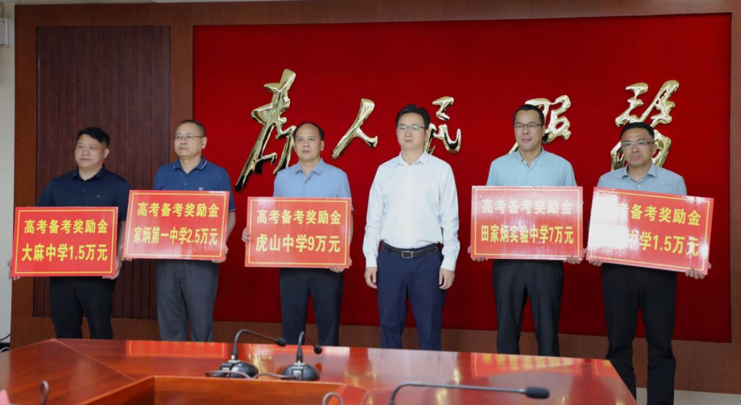 会上,虎山中学、实验中学校长分别汇报了近期高考备考工作情况,县教育局主要负责同志分析了大埔县“广东一测”和“梅州一检”考试情况并布置高考备考有关工作。蓝欣向八所高(完)中、家炳职校和教师发展中心教学研究部颁发高考备考慰问金共30万元。