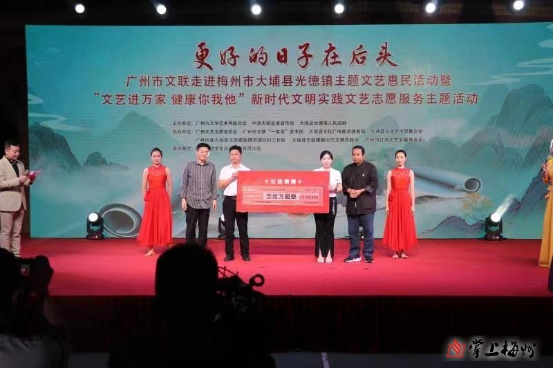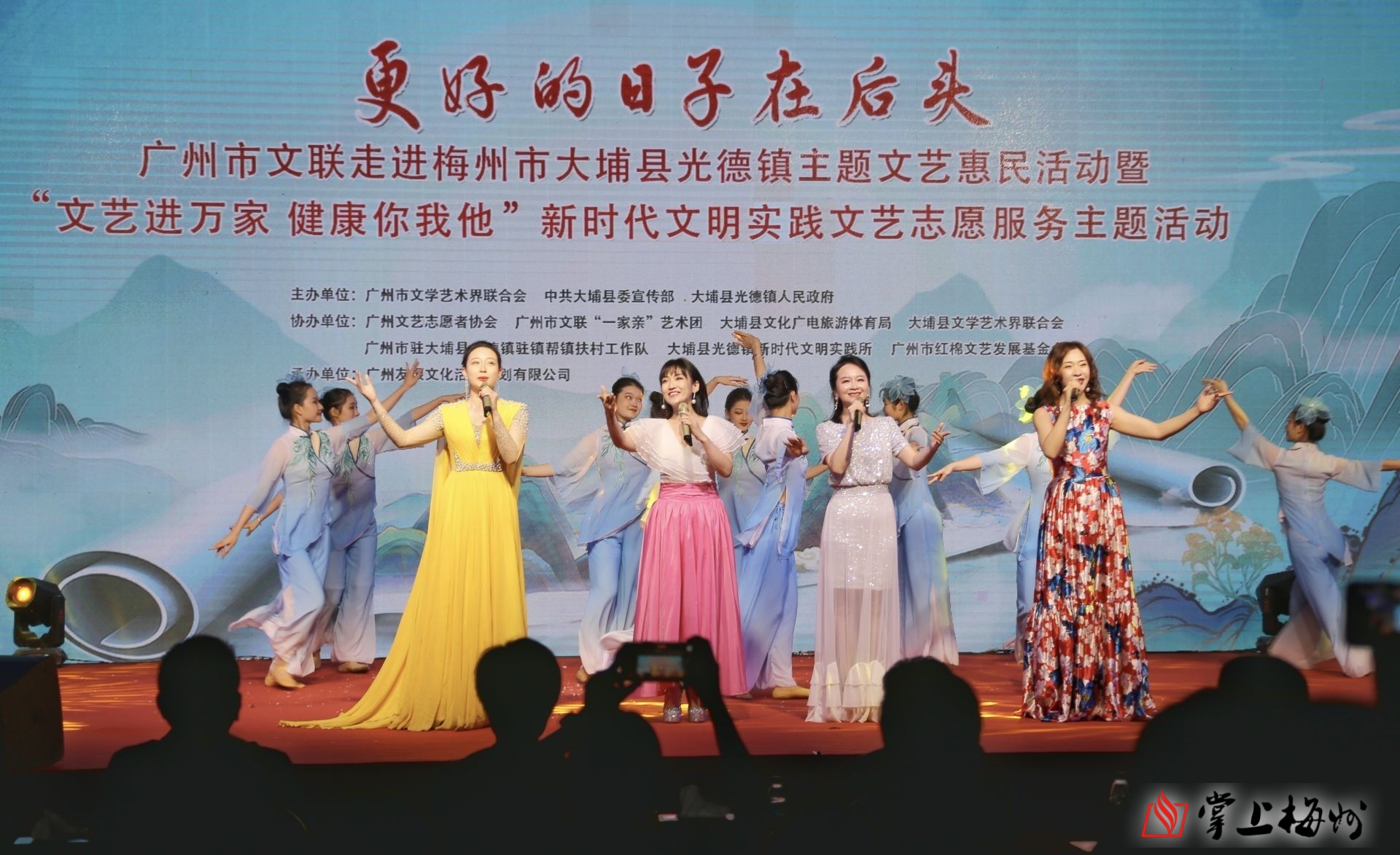 掌上梅州讯 5月23日晚,由广州市文学艺术界联合会、大埔县委宣传部、大埔县光德镇人民政府主办的“更好的日子在后头”主题文艺惠民活动在光德镇中心小学举行。广州市文联党组书记、主席李鹏程,大埔县副县长罗春达等领导嘉宾和500多名群众到场观看演出。