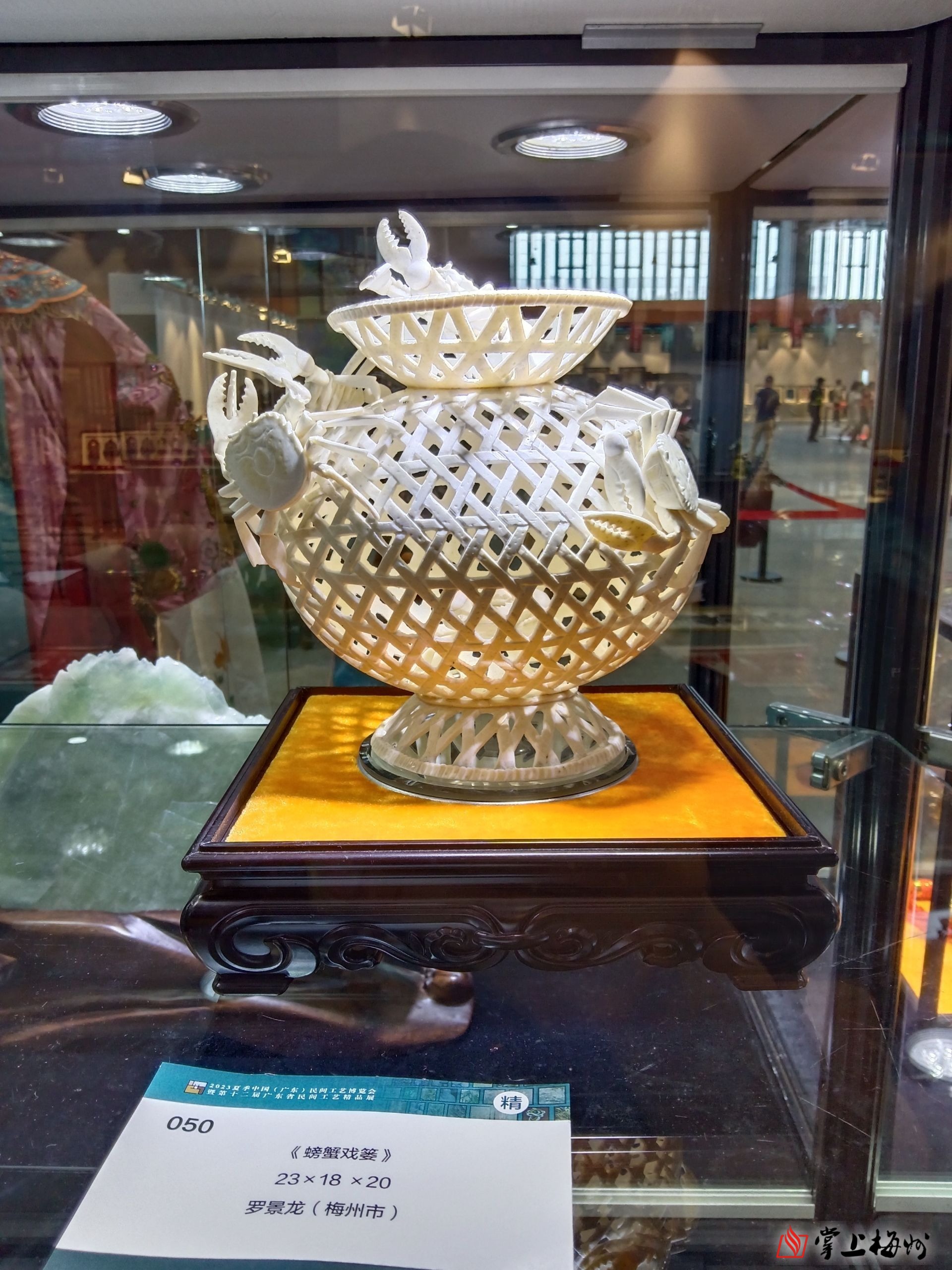 5月26日至28日,2023夏季中国(广东)民间工艺博览会暨第十二届广东省民间工艺精品展在广州市保利世贸博览馆举办。大埔县罗景龙蛋雕作品《螃蟹戏篓》参展。