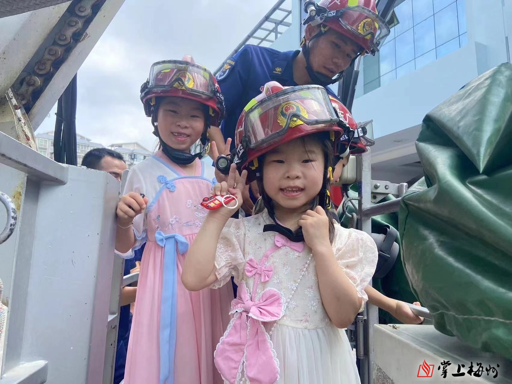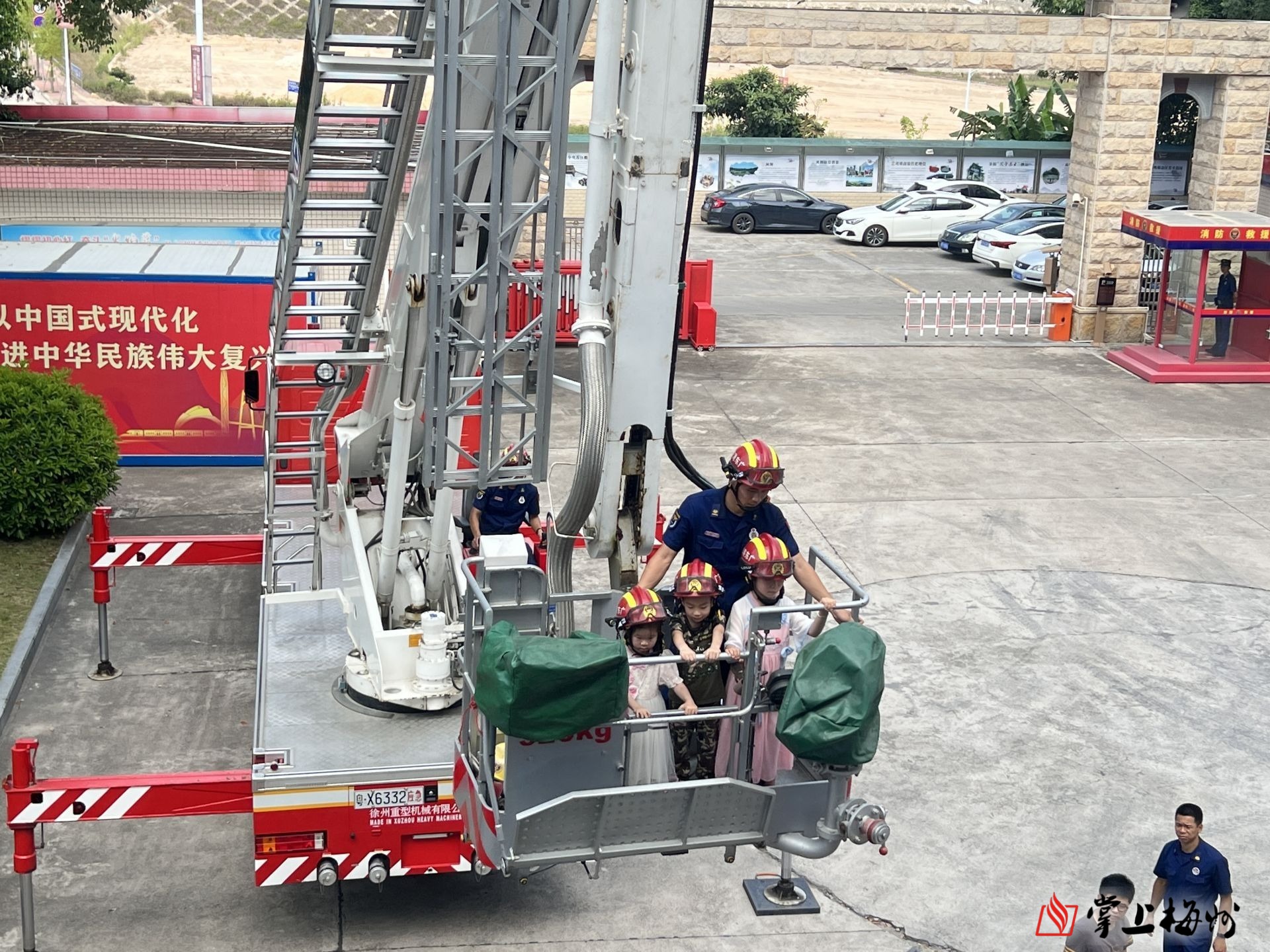 掌上梅州讯 6月1日上午9时,近30名小朋友在监护人和社区志愿者的陪伴下走进大埔县消防救援大队学习消防知识,亲身感受消防魅力。