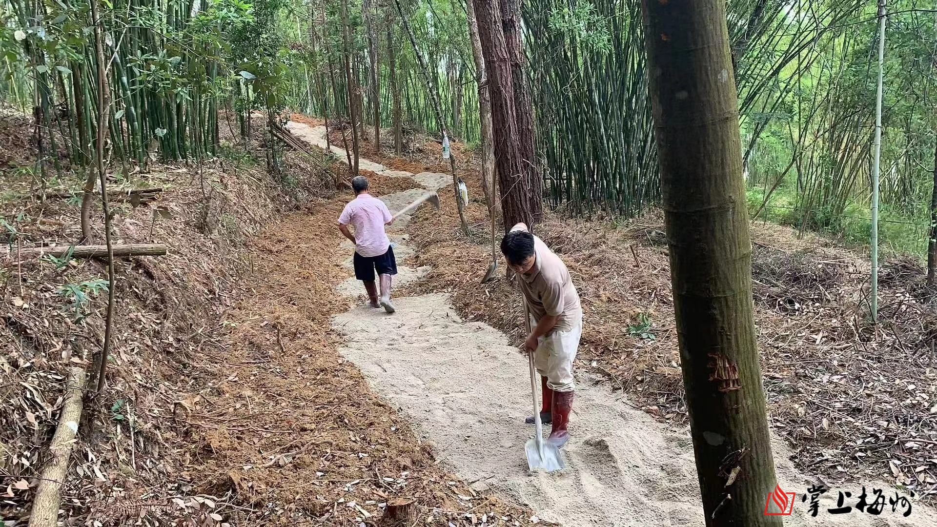 日前,记者来到大埔县三河坝绿美广东示范点建设现场看到,在大埔县委党校初心园位置上,工人们正在认真实施竹林道工程,远眺对面小微湿地改造现场,一台勾机正在施工,工人们正在种植冷水杉,旁边一处山体,工人们正在实施边坡复绿工程。