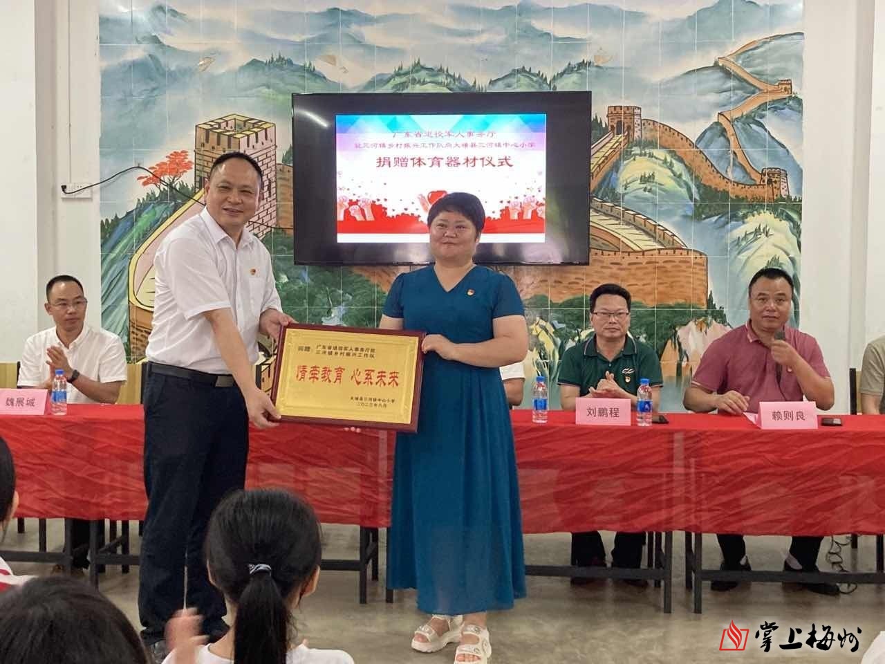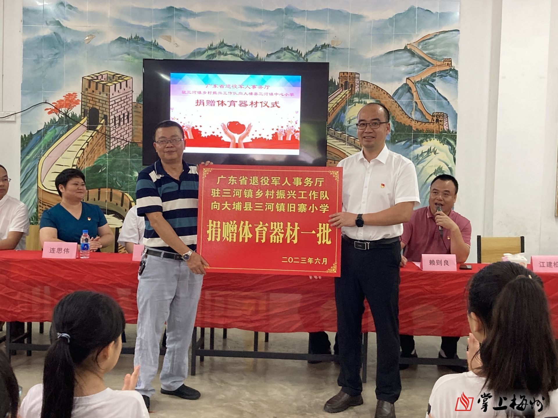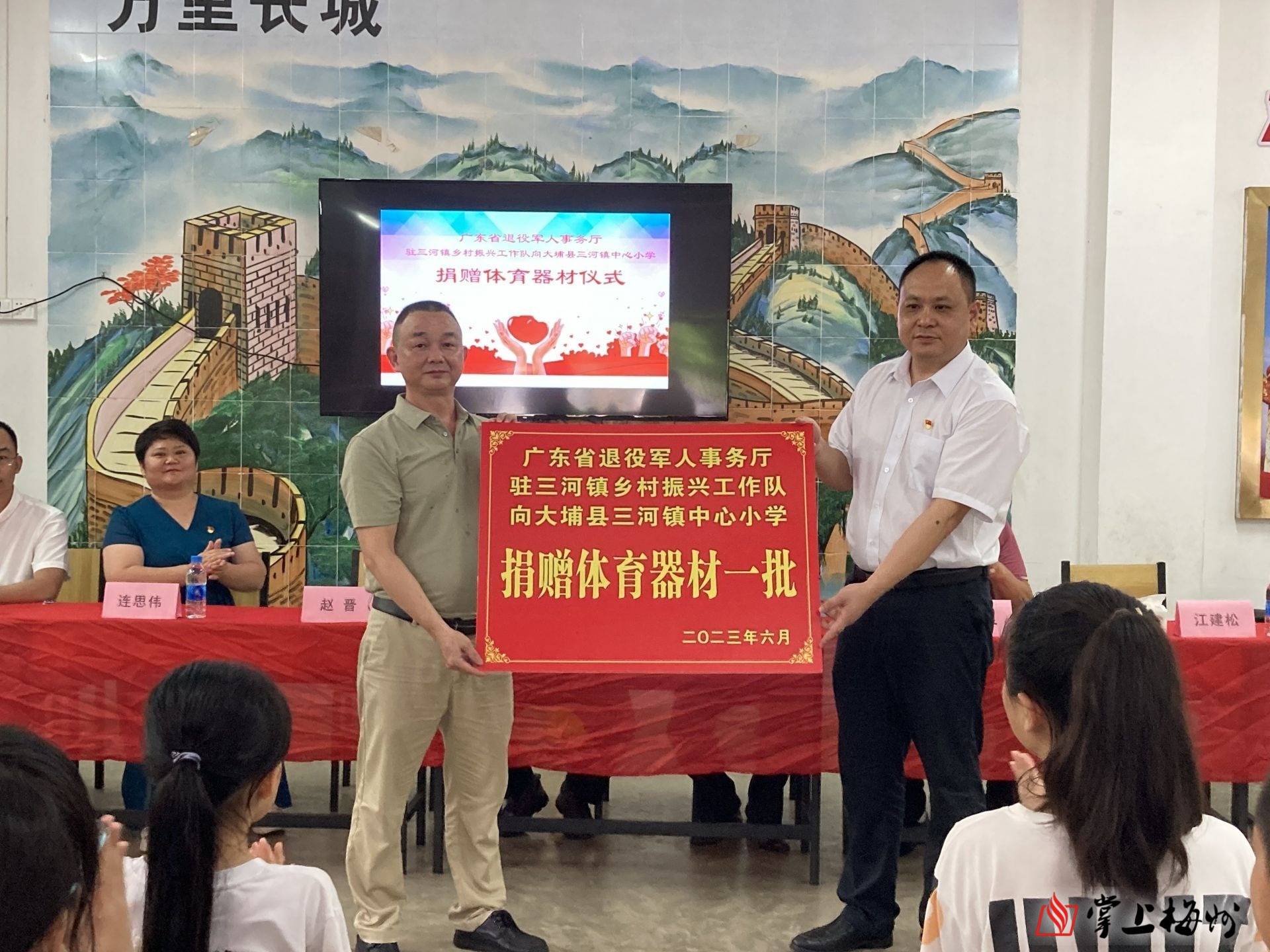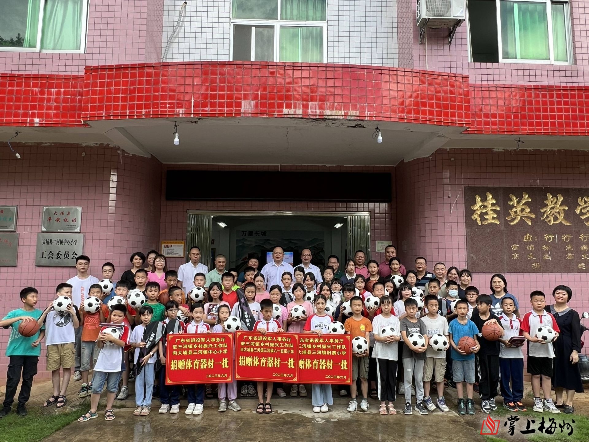 掌上梅州讯 日前,广东省退役军人事务厅驻三河镇乡村振兴工作队体育器材捐赠活动在大埔县三河镇中心小学举行。