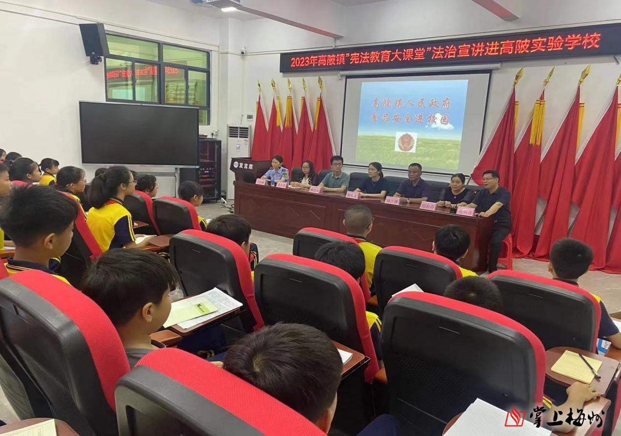 掌上梅州讯 6月14日下午,大埔高陂司法所联合高陂镇市场监管所、高陂实验学校、高陂镇综治办、广东客嘉律所在高陂实验学校举办了高陂镇“宪法教育大课堂”主题法治讲座,100余名学生聆听了讲座。