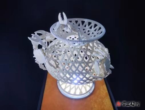 掌上梅州讯 近日,第十二届广东省民间工艺精品展评审结果揭晓。大埔县罗景龙蛋雕作品《螃蟹戏篓》获第十二届广东省民间工艺精品展优秀奖。