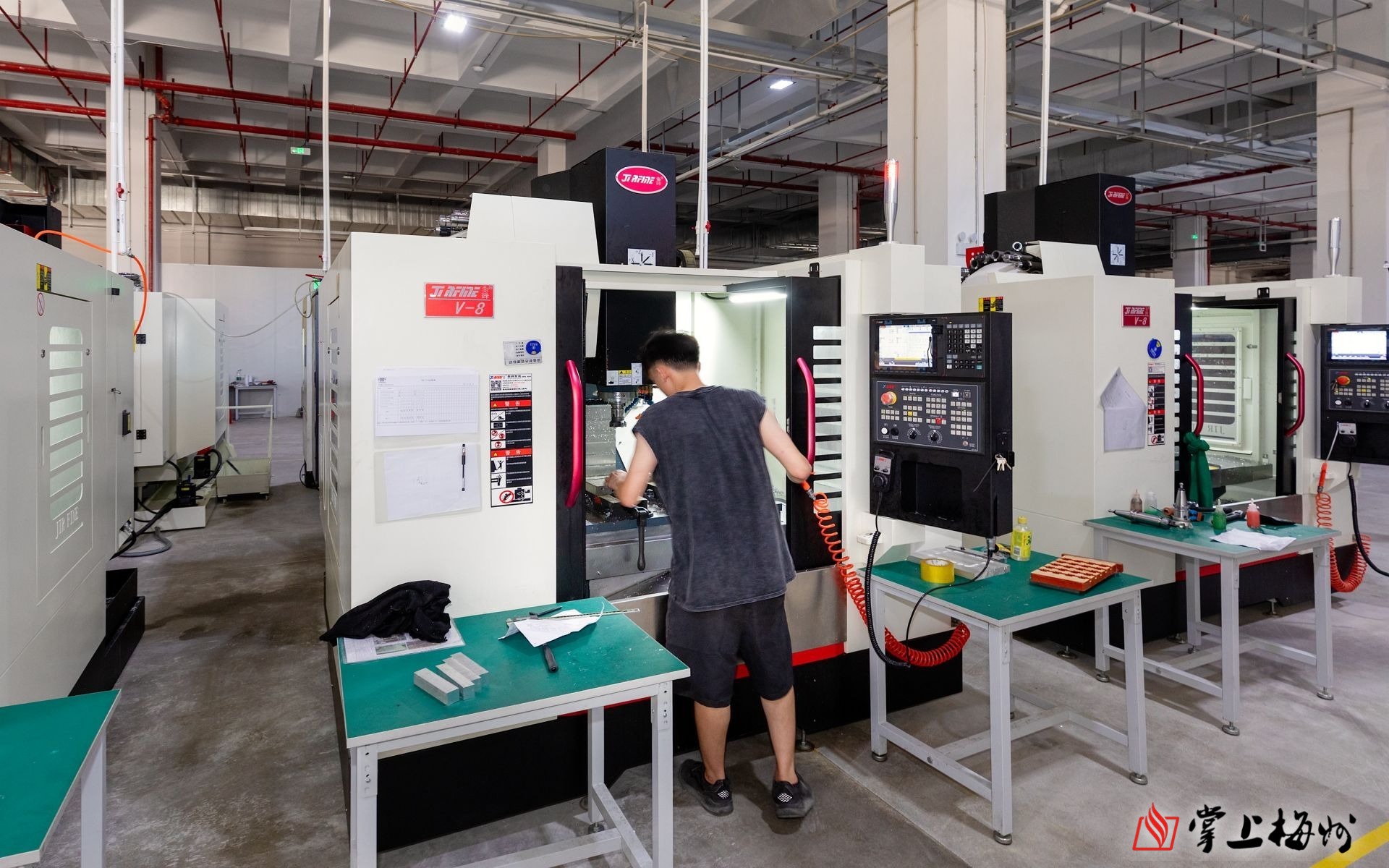 鸿翔瑞材料有限公司的工人正在车间安装调试设备。(连志城 摄)
