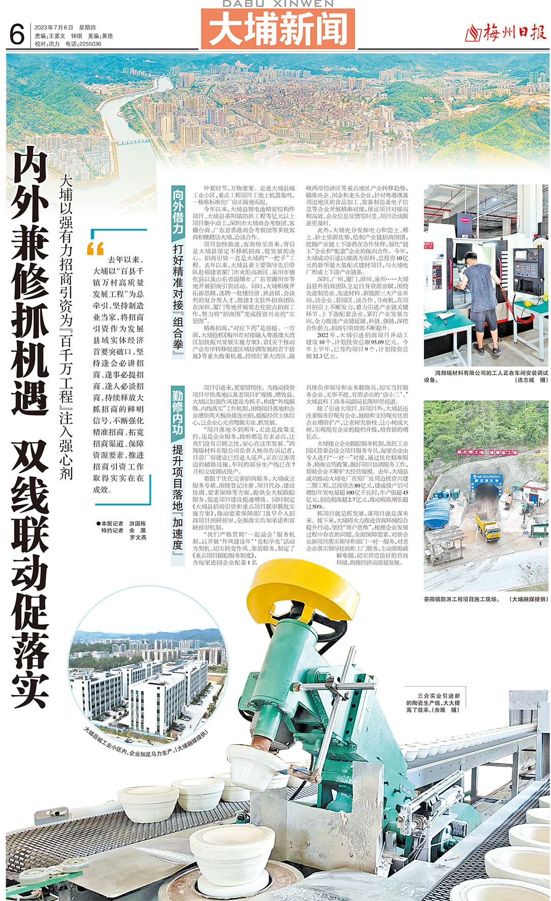 今年以来,大埔县锂电池精密结构件项目、大埔县茶阳镇防洪工程等亿元以上项目集中动工,深圳市大埔商会考察团、客籍台商、广东省香港商会考察团等多批客商相继踏访大埔,洽谈合作。