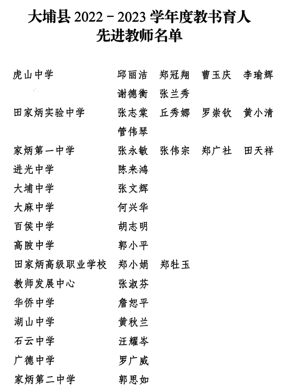 大会开始,全体起立,奏唱国歌,2名少先队队员代表全县学子向全体教师和教育工作者献词。蓝欣宣读了《大埔县人民政府关于表彰 2022—2023学年度教书育人先进教师的决定》。与会领导分别为获奖学校及教师代表颁发高考质量奖、教书育人先进教师奖、教育贡献奖,获奖教师代表进行了发言。