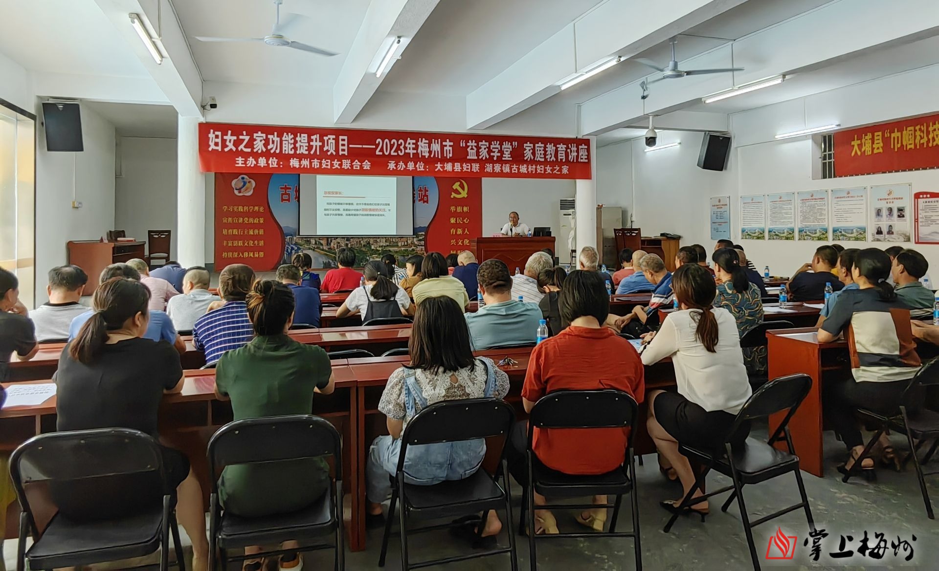 掌上梅州讯 9月15日上午,由梅州市妇联主办,大埔县妇联、湖寮镇古城村妇女之家承办的妇女之家功能提升项目——2023年梅州市“益家学堂”家庭教育讲座在湖寮镇古城村举办,讲座由大埔县妇联副主席廖璐茜主持,邀请了嘉应学院心理健康教育与咨询中心主任、梅州市家庭教育讲师团讲师梁芹生教授现场授课,现场吸引了60多名家长参加。