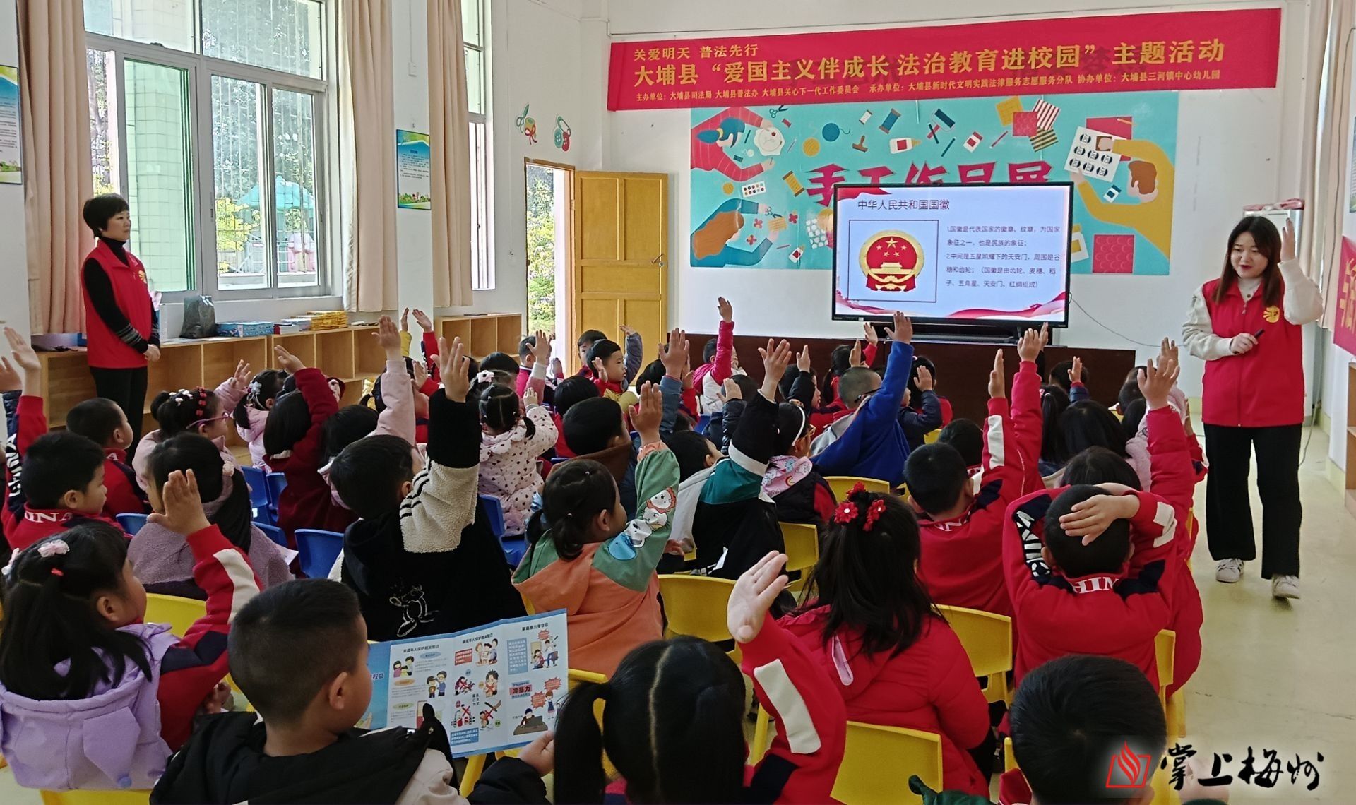 掌上梅州讯 1月12日,由大埔县司法局、大埔县普法办、大埔县关心下一代工作委员会主办,大埔县新时代文明实践法律服务志愿服务分队承办的“爱国主义伴成长 法治教育进校园”主题活动在三河镇中心幼儿园开展。