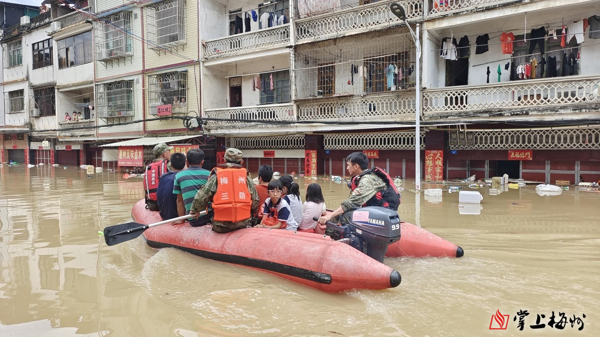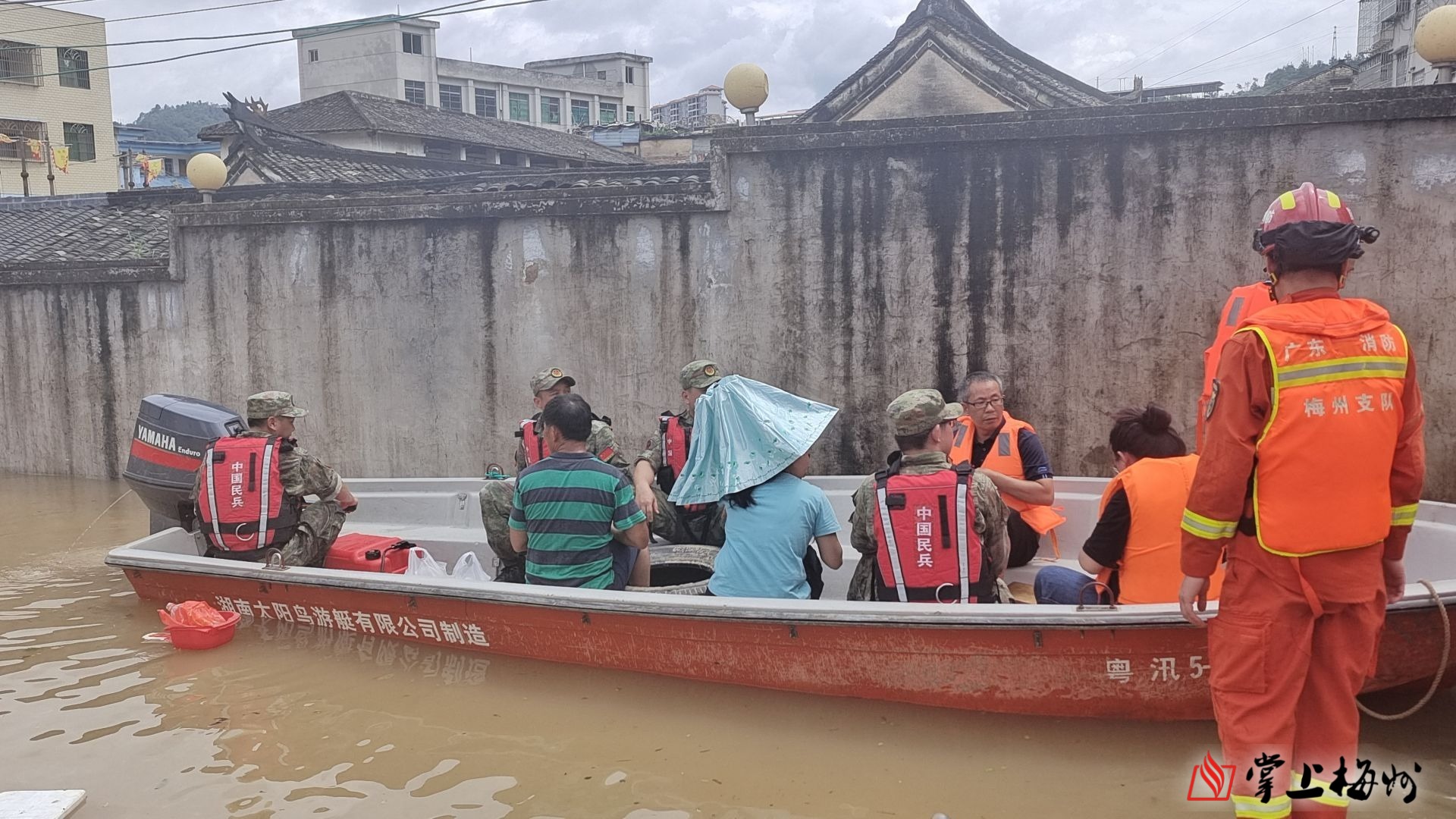 6月16日晚上11时许,梅州市军分区动员处上校处长范晓明、参谋傅凌华以及大埔县人武部政委杨润世带领本部机关人员、民兵90余人分成两组运载冲锋舟、橡皮艇,第一时间奔赴高陂镇、茶阳镇开展抢险救援。6月17日早上8时许,大埔县人武部又组织70余人火速支援三河镇。搜救群众、加固堤防……官兵们闻令而动,紧急驰援,用实际行动温暖了群众的心。