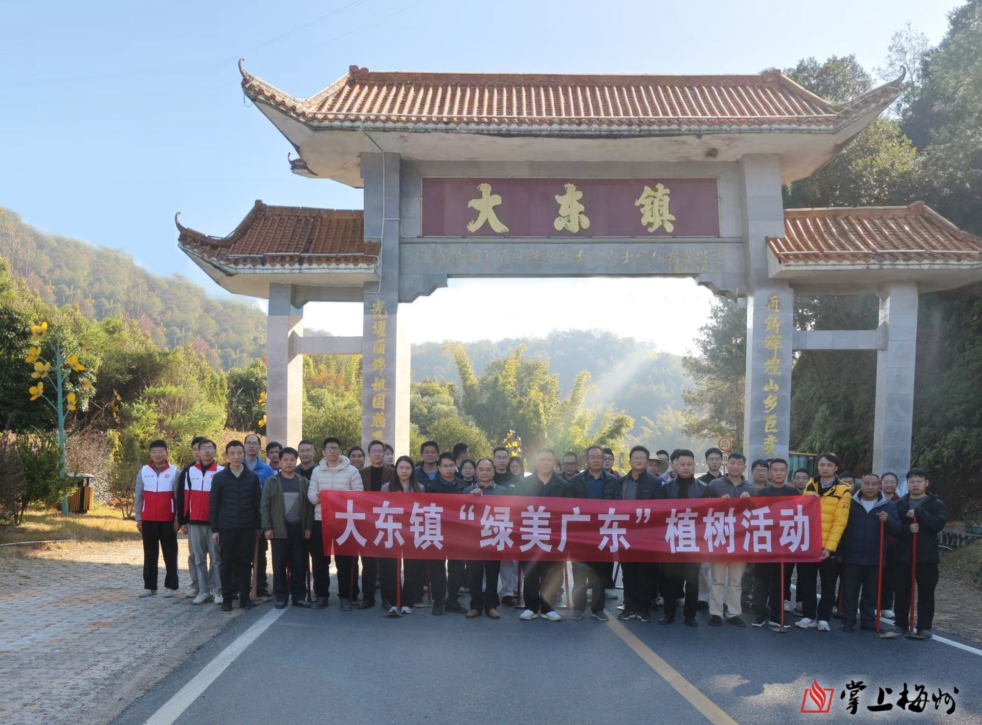 掌上梅州讯 1月14日上午,大埔县大东镇组织党员干部在大东镇牌坊至镇区沿线开展植树活动。大东镇党委书记江启清、大东镇镇长杨震等参加活动。