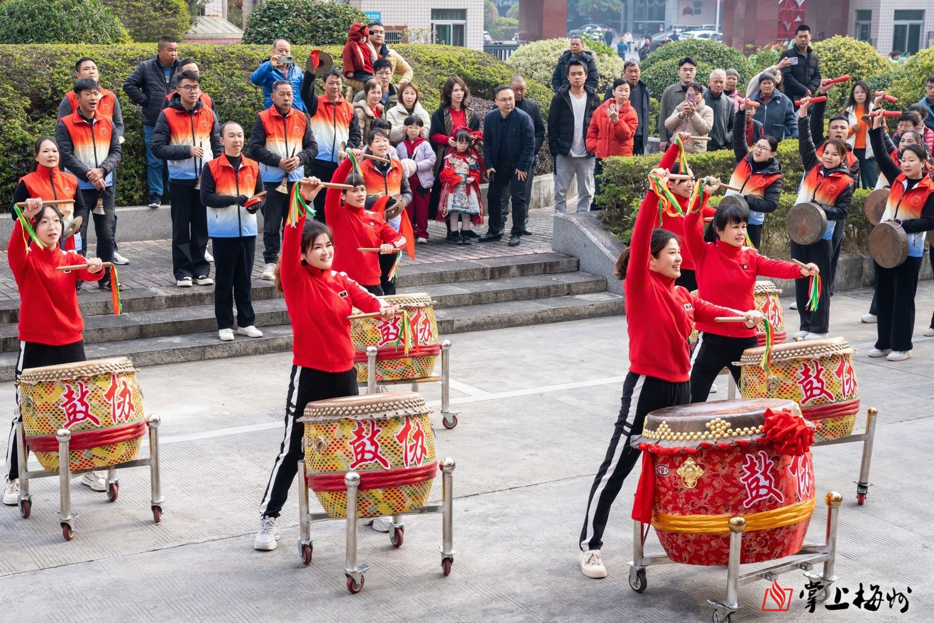 当天上午,湖寮镇政府院内锣鼓喧天,祥龙腾跃,金狮起舞......锣鼓队、花环龙、舞狮队由此出发,途经义招路、虎山路,最后到达文化广场。一路上,气势磅礴的拜年队伍让大埔县城充满了喜庆热闹的氛围,吸引了许多市民驻足观看,街上人头攒动,个个脸上绽放着欢乐的笑容。青红两龙在锣鼓声中时而蜿蜒游动,时而昂首盘旋,灵动非凡;狮子奔跑跳跃,寓意着蛇年生机勃勃;锣鼓队精神抖擞,锣鼓声铿锵有力、节奏明快,精彩的表演引得大家阵阵喝彩。途中,不断有市民加入拜年队伍,到达文化广场时已是人山人海。