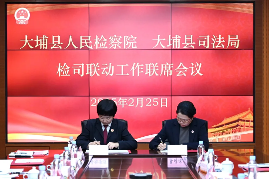 为进一步助推法治政府建设,更好地服务保障大埔经济高质量发展,2月25日下午,大埔检察院与县司法局召开检司联动工作联席会议。会议由大埔检察院党组成员、副检察长童斯荣主持,院党组书记、检察长王青、县司法局局长杨怡娴及双方相关工作人员参加。
