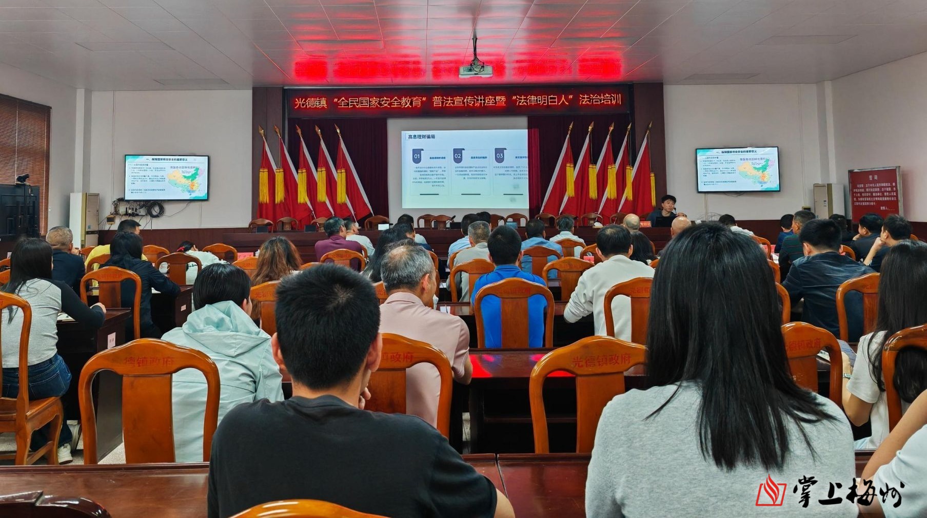 掌上梅州讯 4月11日下午,在第十个全民国家安全教育日来临之际,大埔县司法局光德司法所联合广东法泰律师事务所为镇、村干部及“法律明白人”开展了一场以“全民国家安全教育”普法宣传讲座暨“法律明白人”法治培训为主题的普法宣传活动。