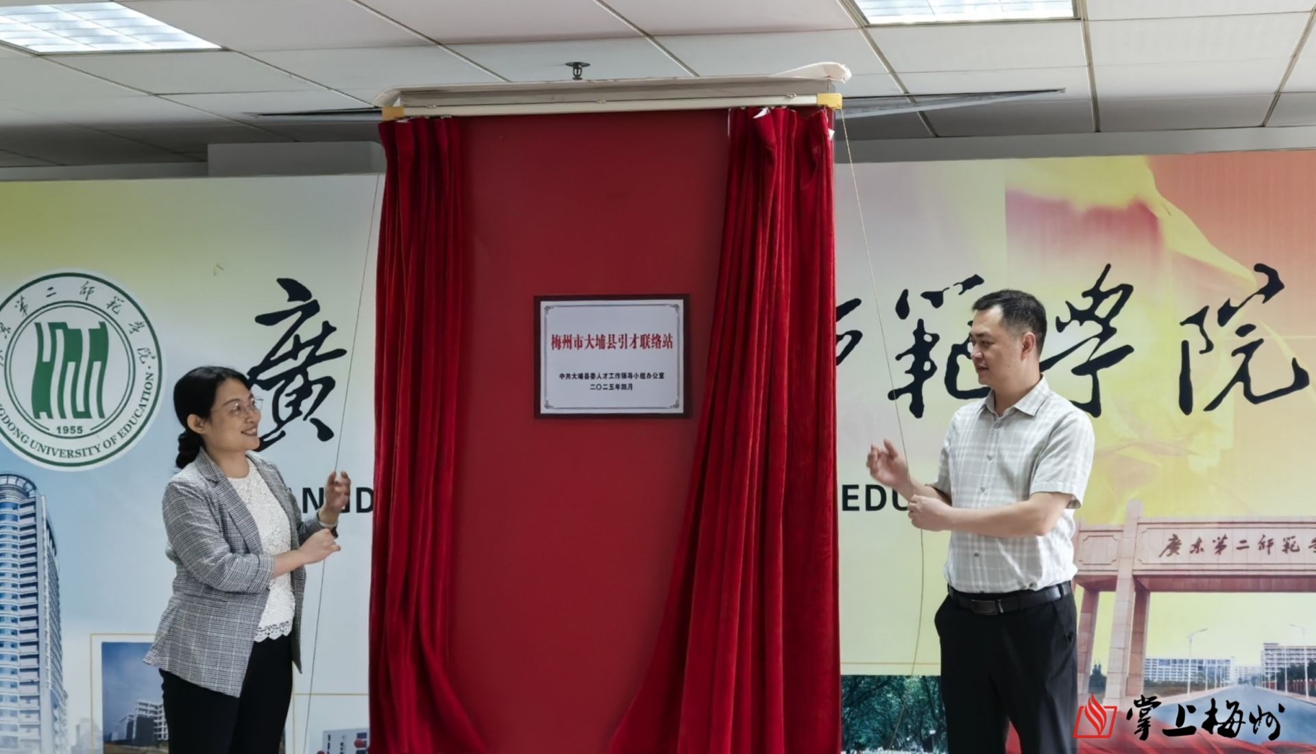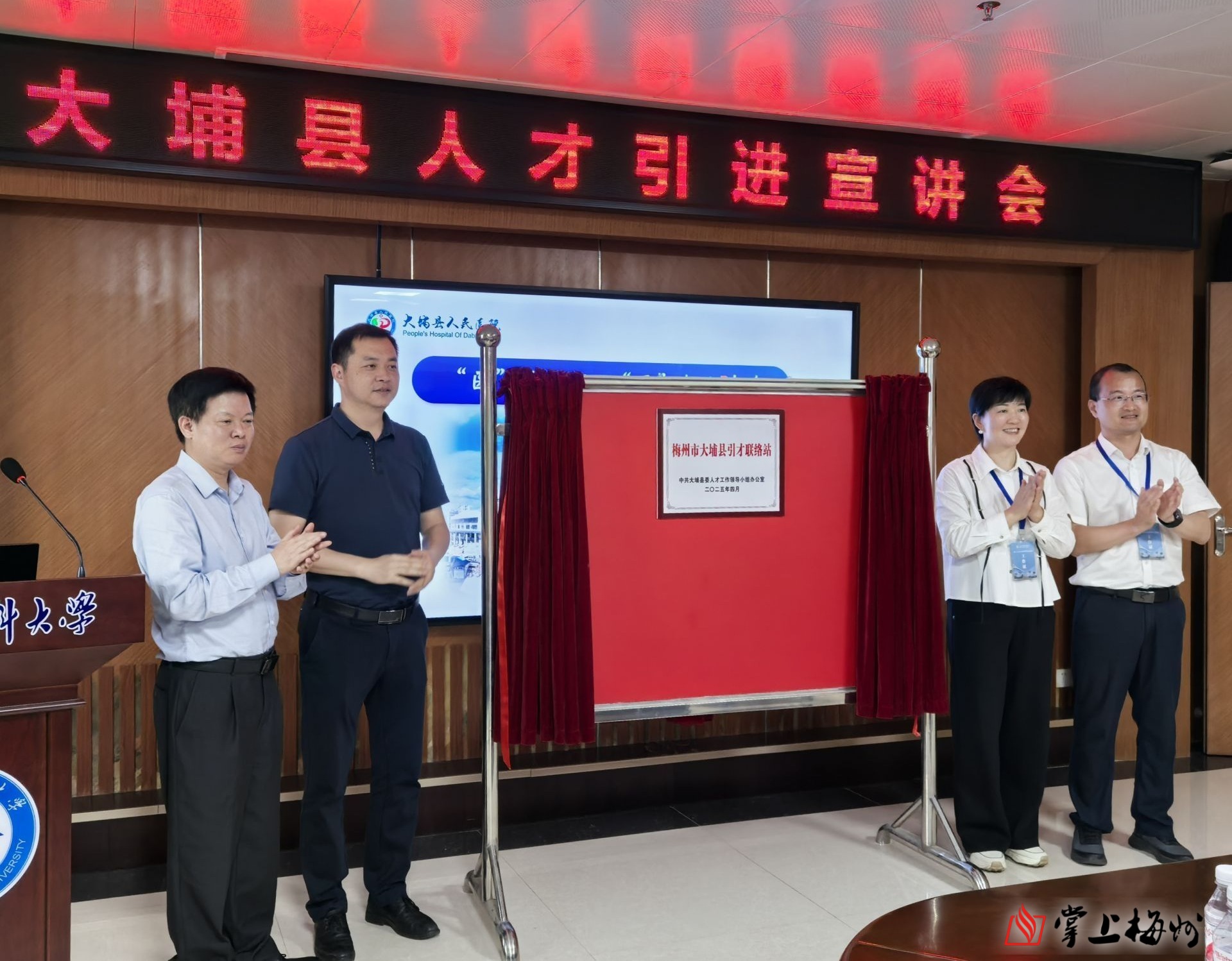 掌上梅州讯 为深入贯彻落实“百万英才汇南粤”行动计划,实施“才聚梅州大行动”,深化校地合作,实现互利共赢,近日,大埔县委常委、组织部部长张榆昌率队赴广东医科大学、广东第二师范学院开展人才引育合作交流活动,举办交流座谈会并为高校引才联络站进行授牌。