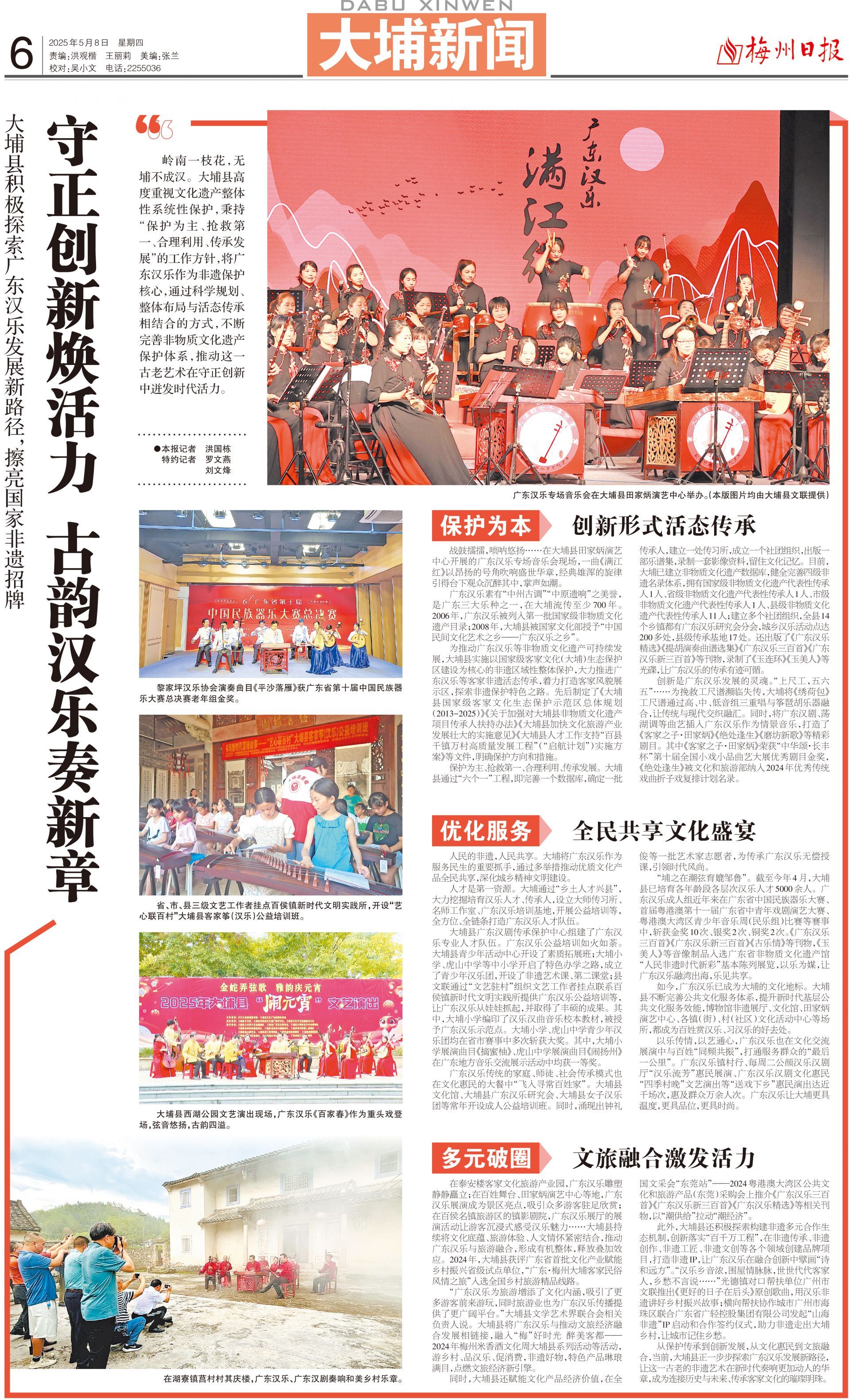 从保护传承到创新发展,从文化惠民到文旅融合,当前,大埔县正一步步探索广东汉乐发展新路径,让这一古老的非遗艺术在新时代奏响更加动人的华章,成为连接历史与未来、传承客家文化的璀璨明珠。