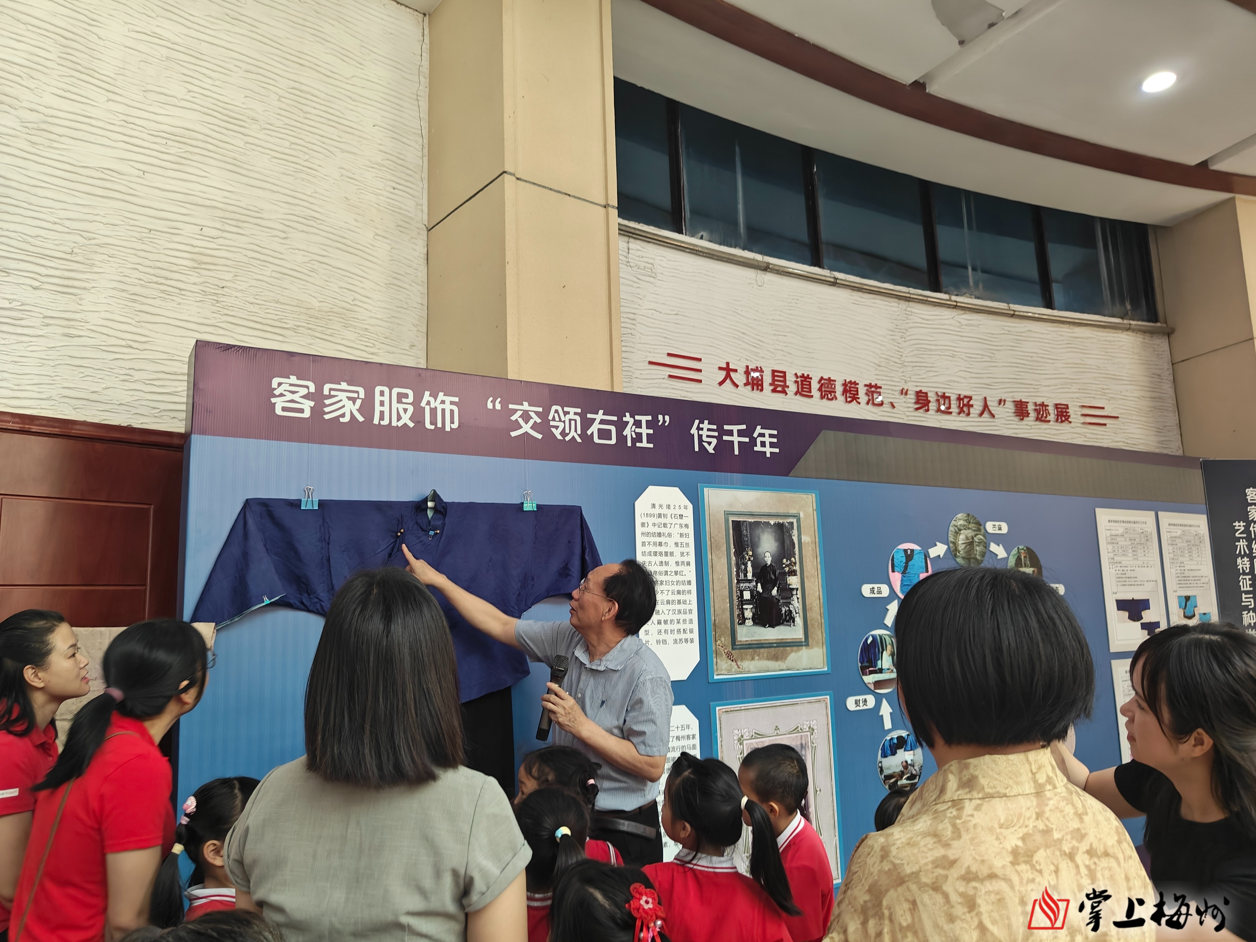 活动的重头戏——“交领右衽”传千年——广东省省级非遗项目“客家服饰・制作技艺”展盛大开幕。展览通过展示客家服饰的历史渊源、制作工艺、文化内涵等内容,深入解读了客家服饰背后的文化密码。梅州市客侨博物馆馆长魏金华先生在现场进行了精彩的示范讲解,带领领导嘉宾和观众共同近距离感受客家服饰制作技艺的独特魅力,领略客家人尊崇礼教、坚韧质朴的精神追求。