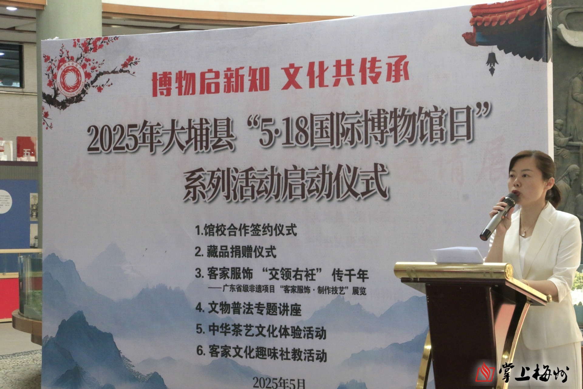 5月14日,2025年大埔县“5·18国际博物馆日”系列活动启动仪式在大埔县博物馆隆重举行。本次活动紧扣“快速变化社会中的博物馆未来”主题,旨在深入探讨博物馆在社会变革浪潮中的重要角色与使命,大力推动文物的保护与传承,进一步增强公众的保护意识,为赓续中华文脉、筑牢民族精神根基凝聚强大力量。