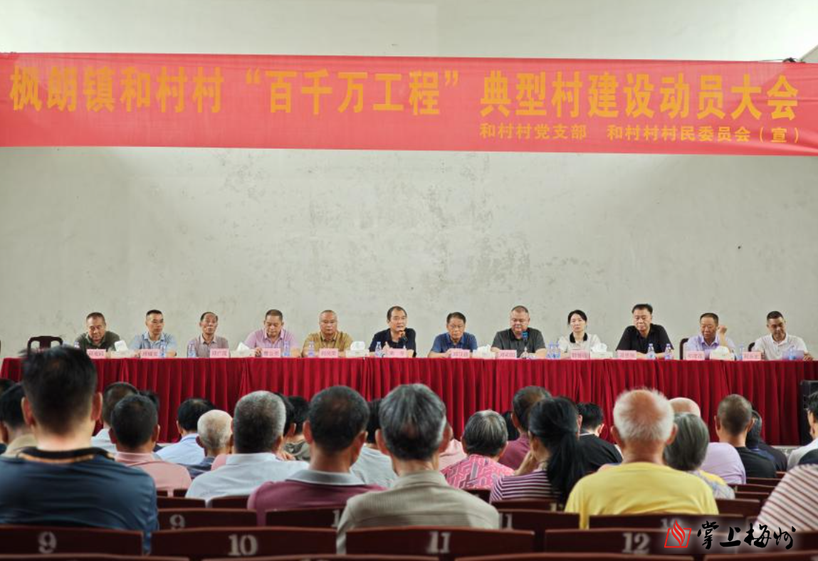 掌上梅州讯 为全面推进和村村典型村建设,激发乡村建设强大合力,近日,大埔县枫朗镇召开“百千万工程”典型村建设动员大会。枫朗镇党委书记黄冬、镇人大主席刘尚荣等镇领导,和村村“三委”干部、党员、村民代表以及镇相关部门负责人齐聚一堂,共商发展大计。