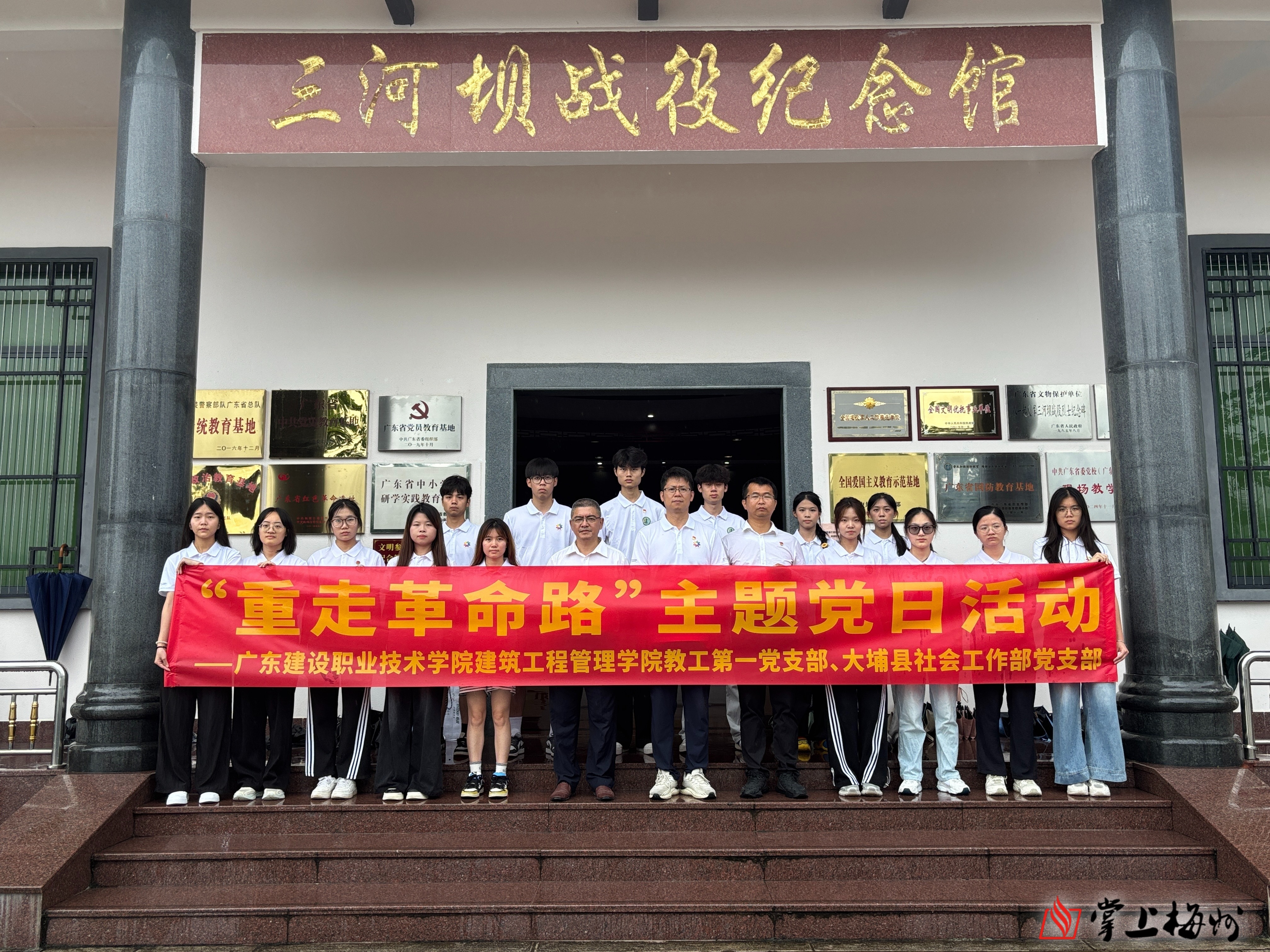 掌上梅州讯 7月10日上午,广东建设职业技术学院建筑工程管理学院教工第一党支部、学生党支部携手大埔县社会工作部党支部在三河坝战役纪念园共同开展“重走革命路”主题党日活动,在红色热土上接受深刻的思想淬炼与精神洗礼。广东建设职业技术学院建筑工程管理学院副院长、教工第一党支部书记朱光金、大埔县社会工作部党支部副书记郭永富,梅州大埔圆梦路上实践队及北埔村手拉手实践队队员参加活动。
