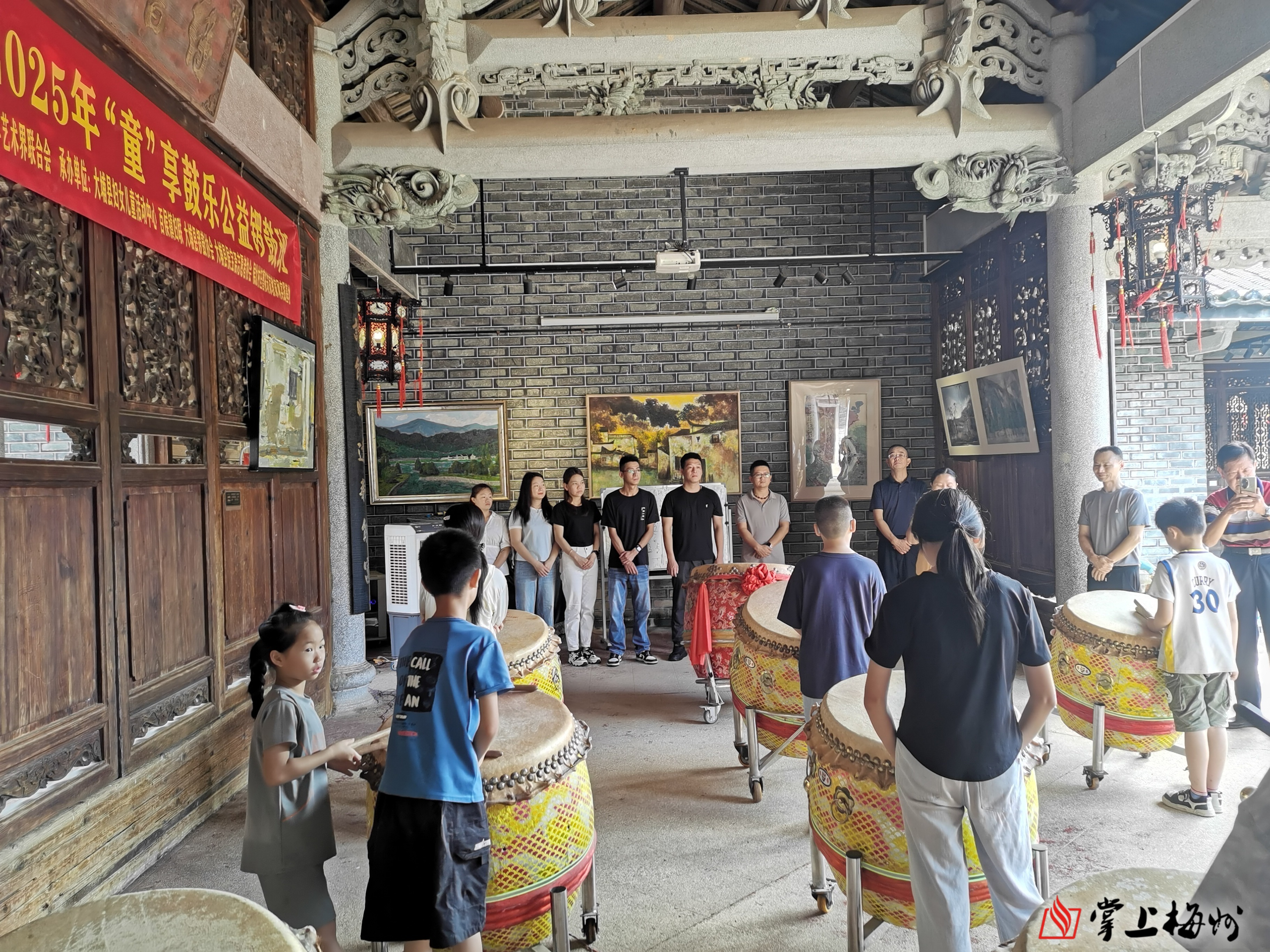 掌上梅州讯 7月13日,2025年“童”享鼓乐公益培训班在大埔县百侯镇侯宝斋举办。活动吸引了20余名小鼓手参加。