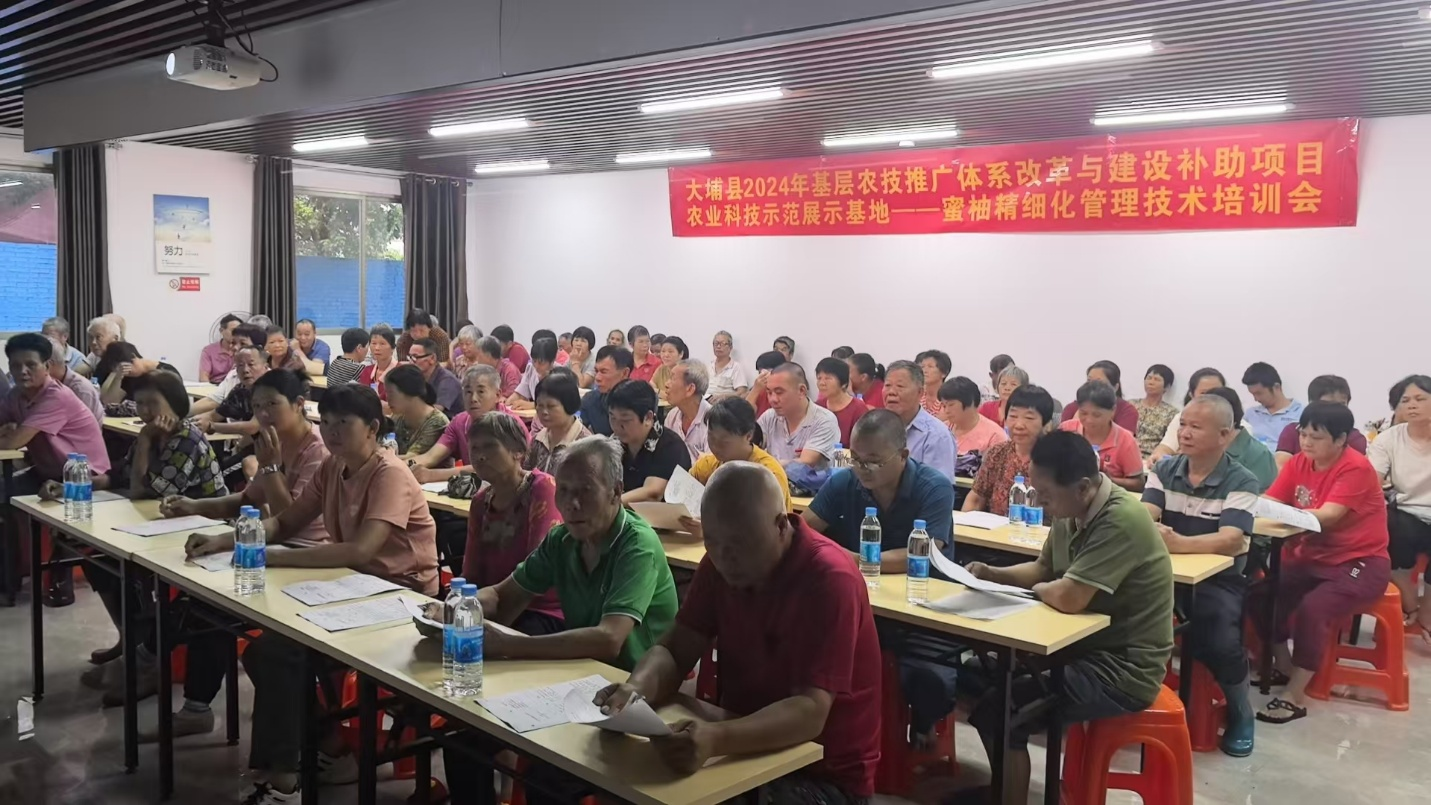 大埔县农业局农技推广中心领导、镇农技推广人员、种植大户等经营主体人员共百余人参加培训。