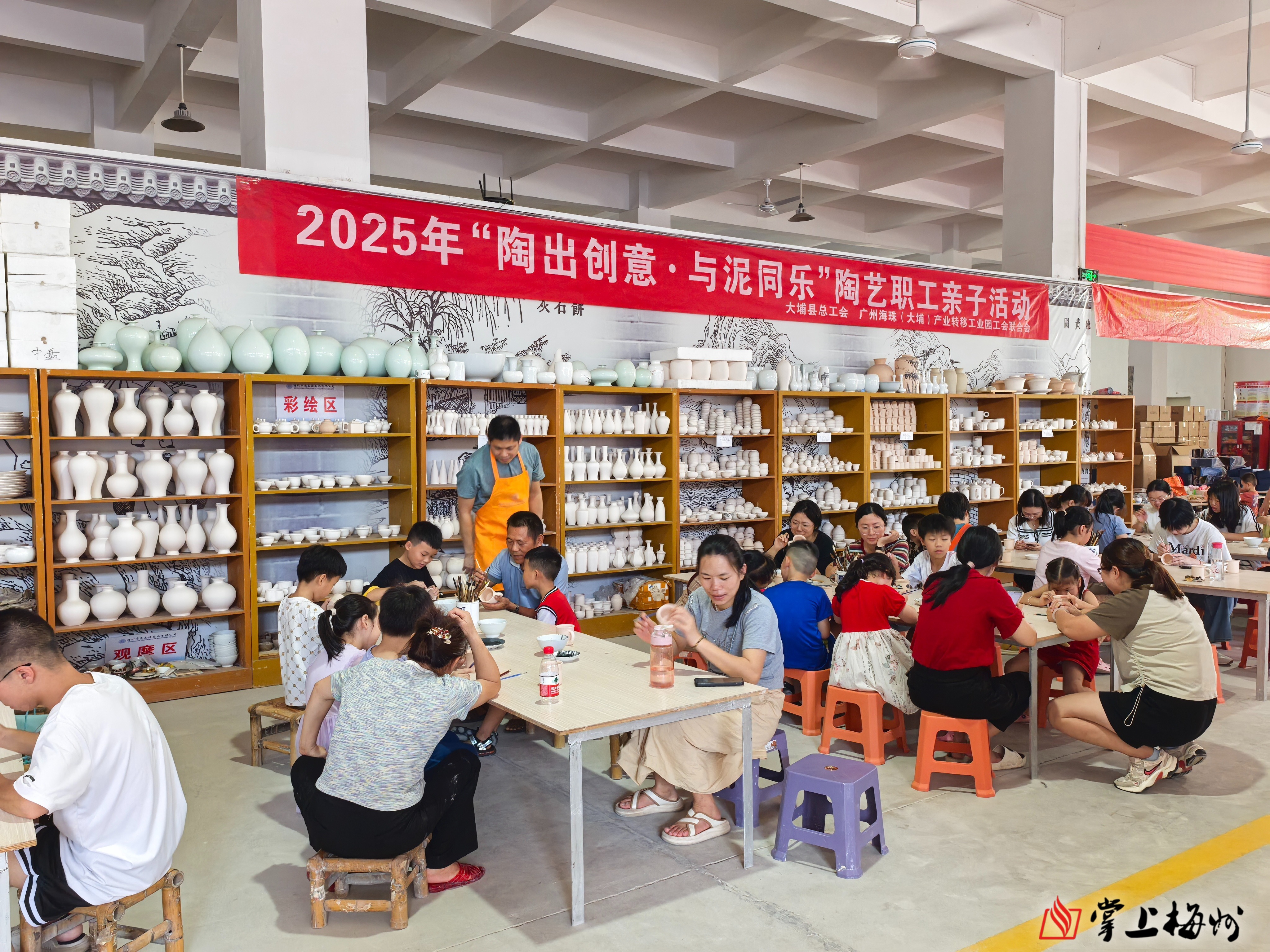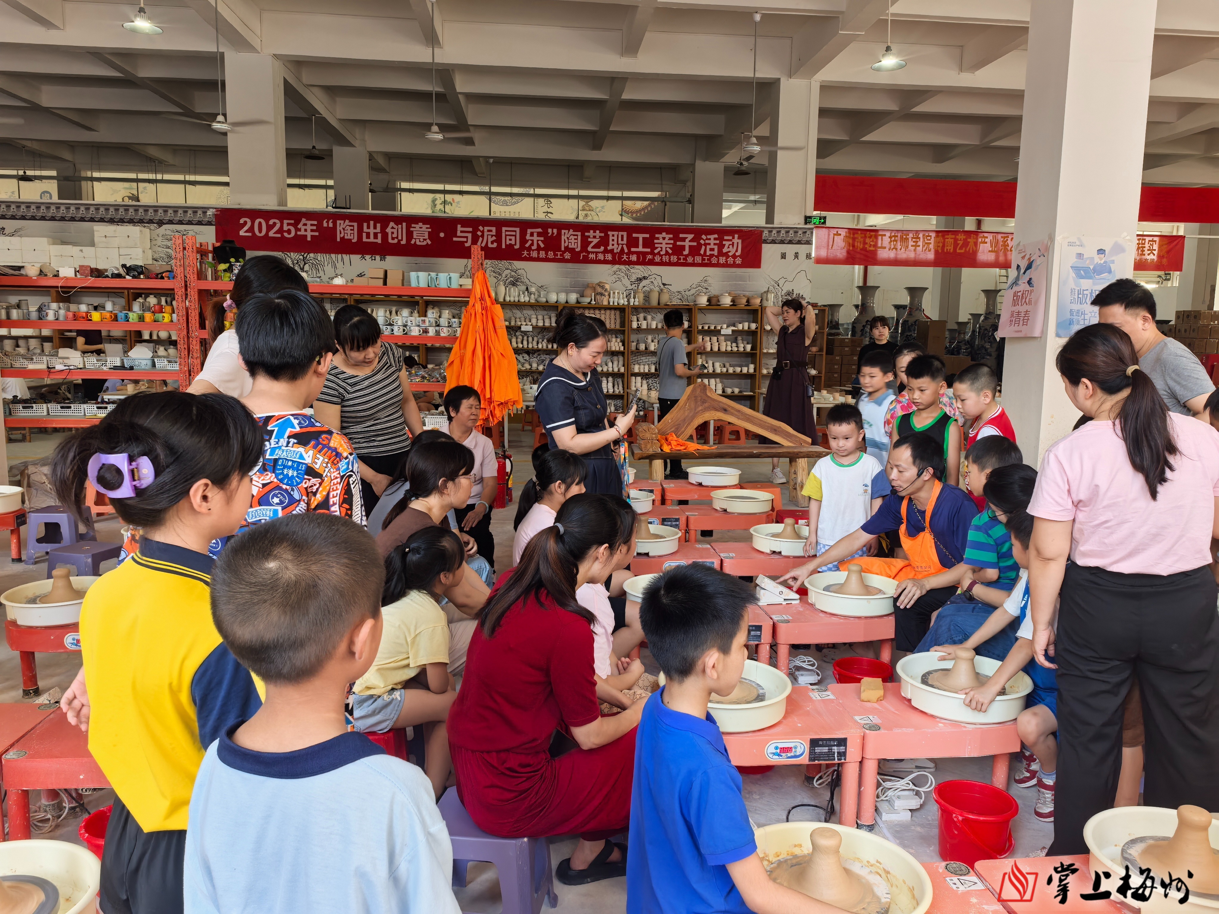 7月24日下午,由大埔县总工会联合广州海珠(大埔)产业转移工业园工联会共同主办的2025年“陶出创意,与泥同乐”陶艺职工亲子活动在园区成功举办。活动吸引了70多名职工子女和家长积极参与,共同体验传统陶艺制作的乐趣。