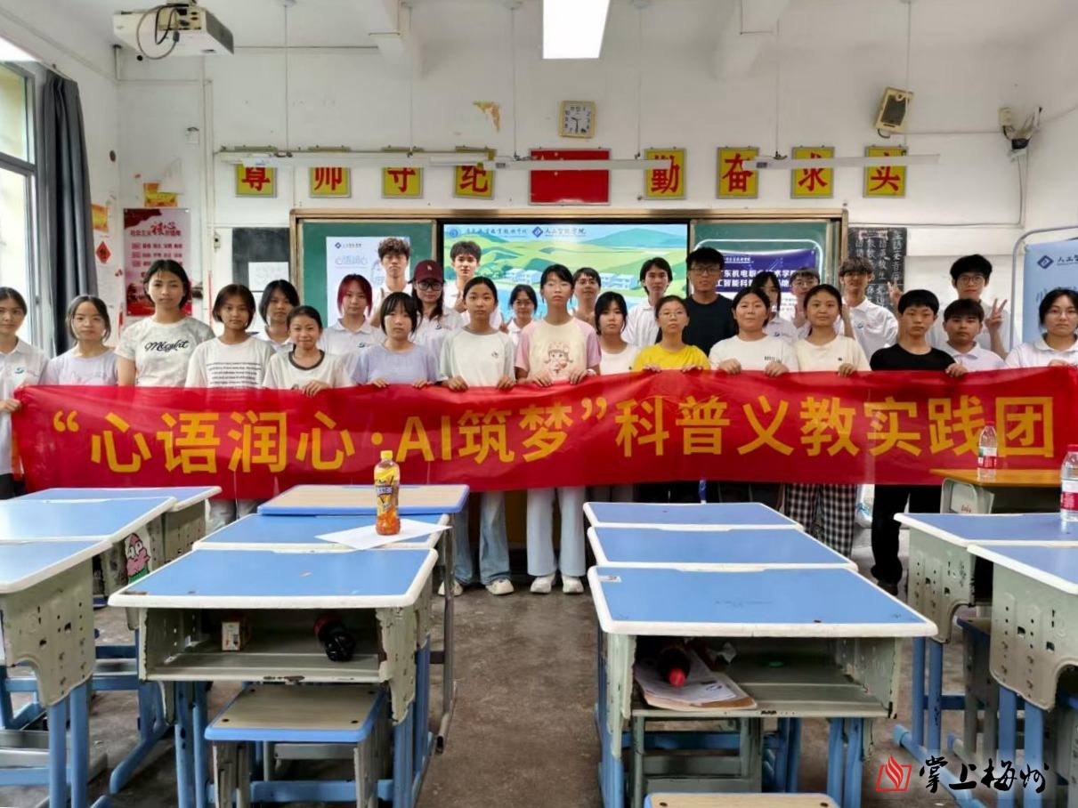 广东机电职业技术学院实践队走进西河中学,开展“人工智能+心理健康”科普义教。课堂上,队员们通过趣味实验、互动闯关,将高深的人工智能知识转化为生动体验,点燃孩子们的探索热情;借助心理疏导游戏、情感分享会,引导学生悦纳自我,提升农村青少年的科学素养与心理健康水平,让阳光照亮求知路、温暖成长心。