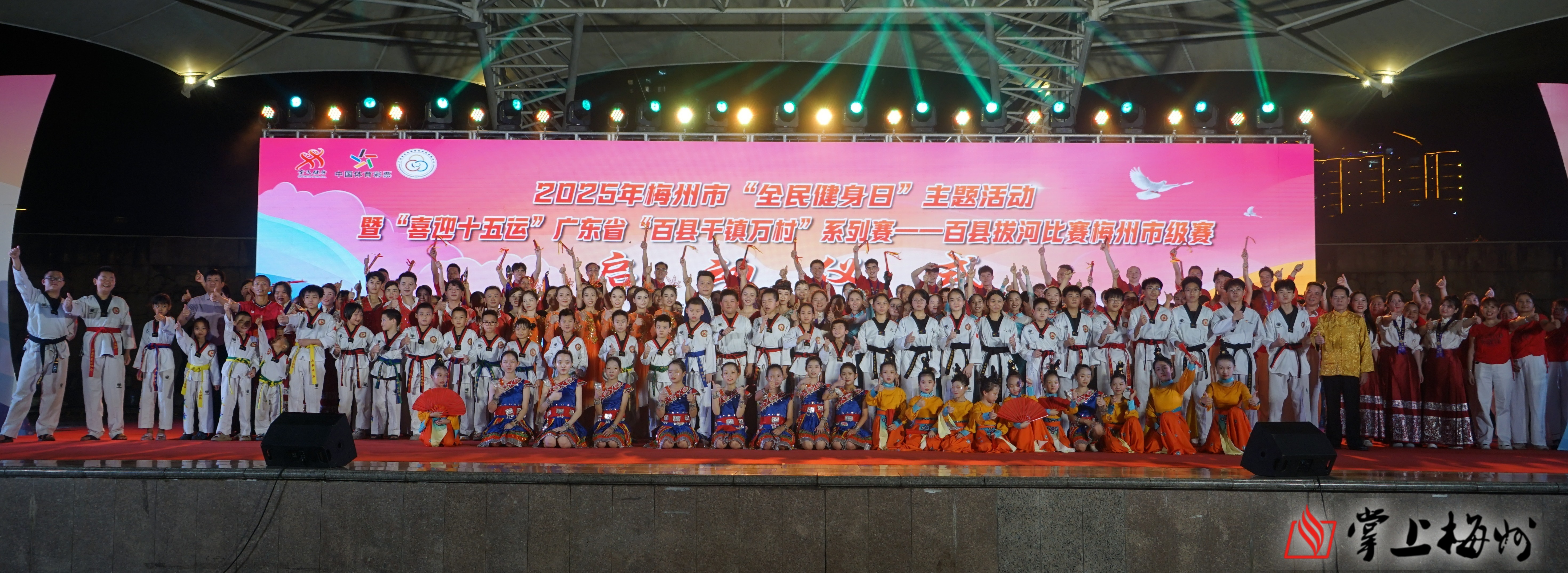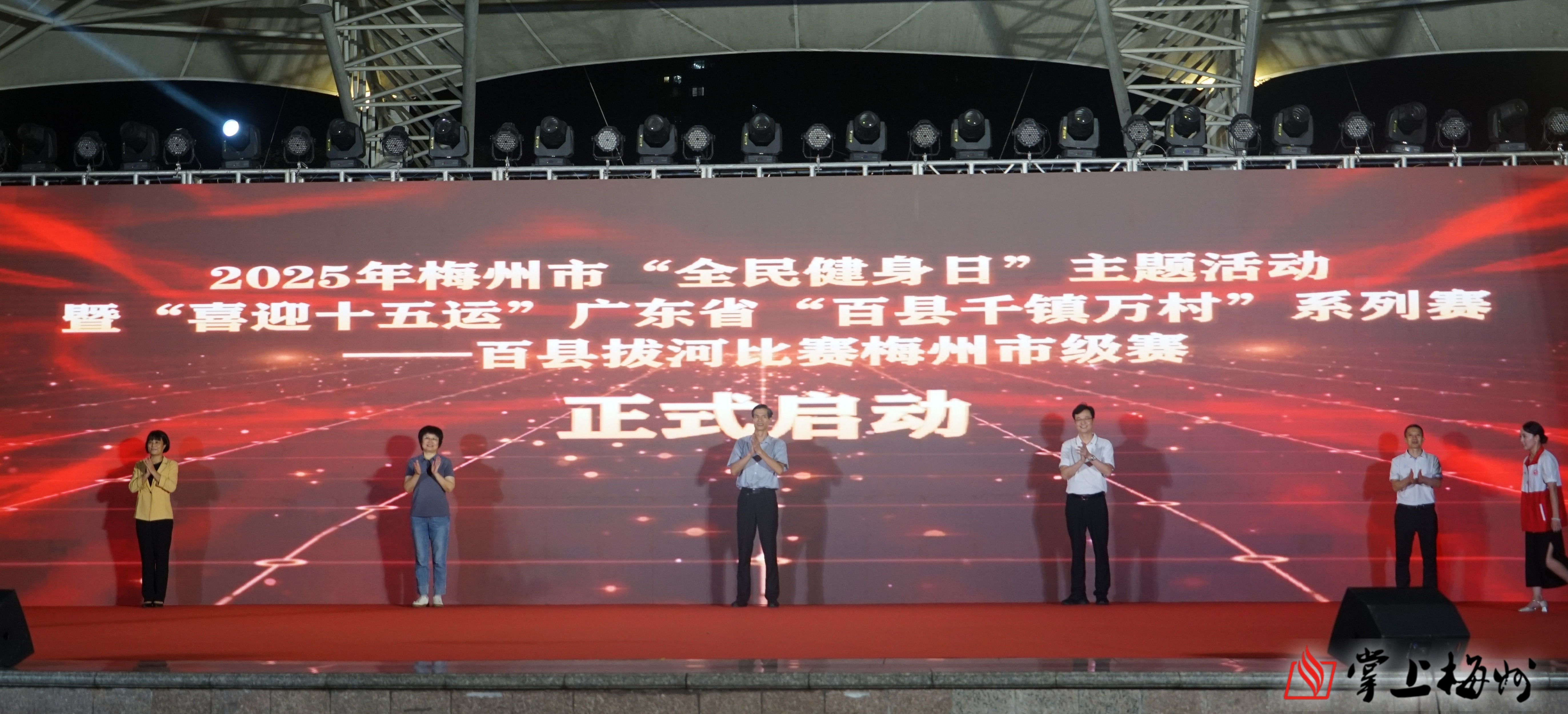 掌上梅州讯 8月7日晚,由大埔县人民政府、梅州市体育局、梅州市体育总会主办,大埔县文化广电旅游体育局承办的“2025年梅州市‘全民健身日’主题活动暨‘喜迎十五运’广东省‘百县千镇万村’系列赛——百县拔河比赛梅州市级赛”在大埔县西湖公园万人广场启动。梅州市政府办公室三级调研员沈省华,市体育局党组书记、局长陈远洋,市体育局党组成员、副局长吴仁发,大埔县副县长饶凌云等共同触屏启动开幕。