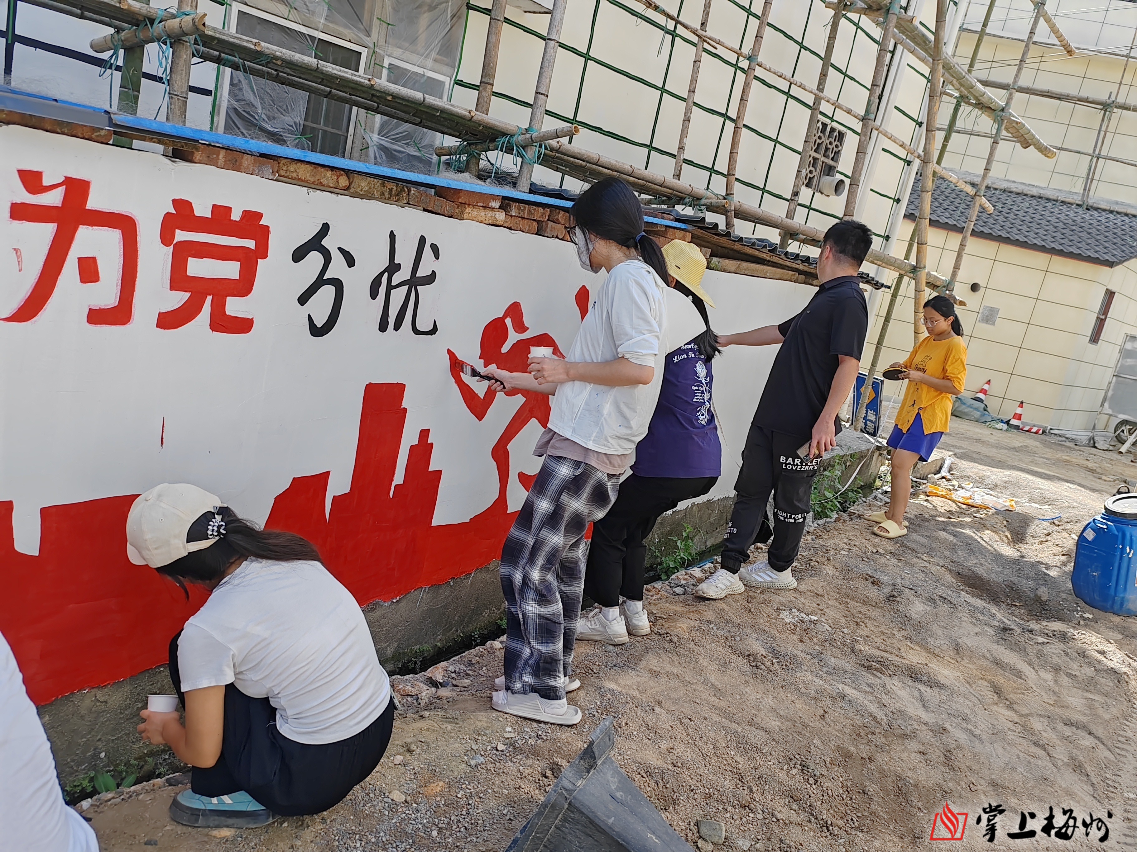 高校学生志愿服务实践队以墙绘助力大埔乡村文化建设。
