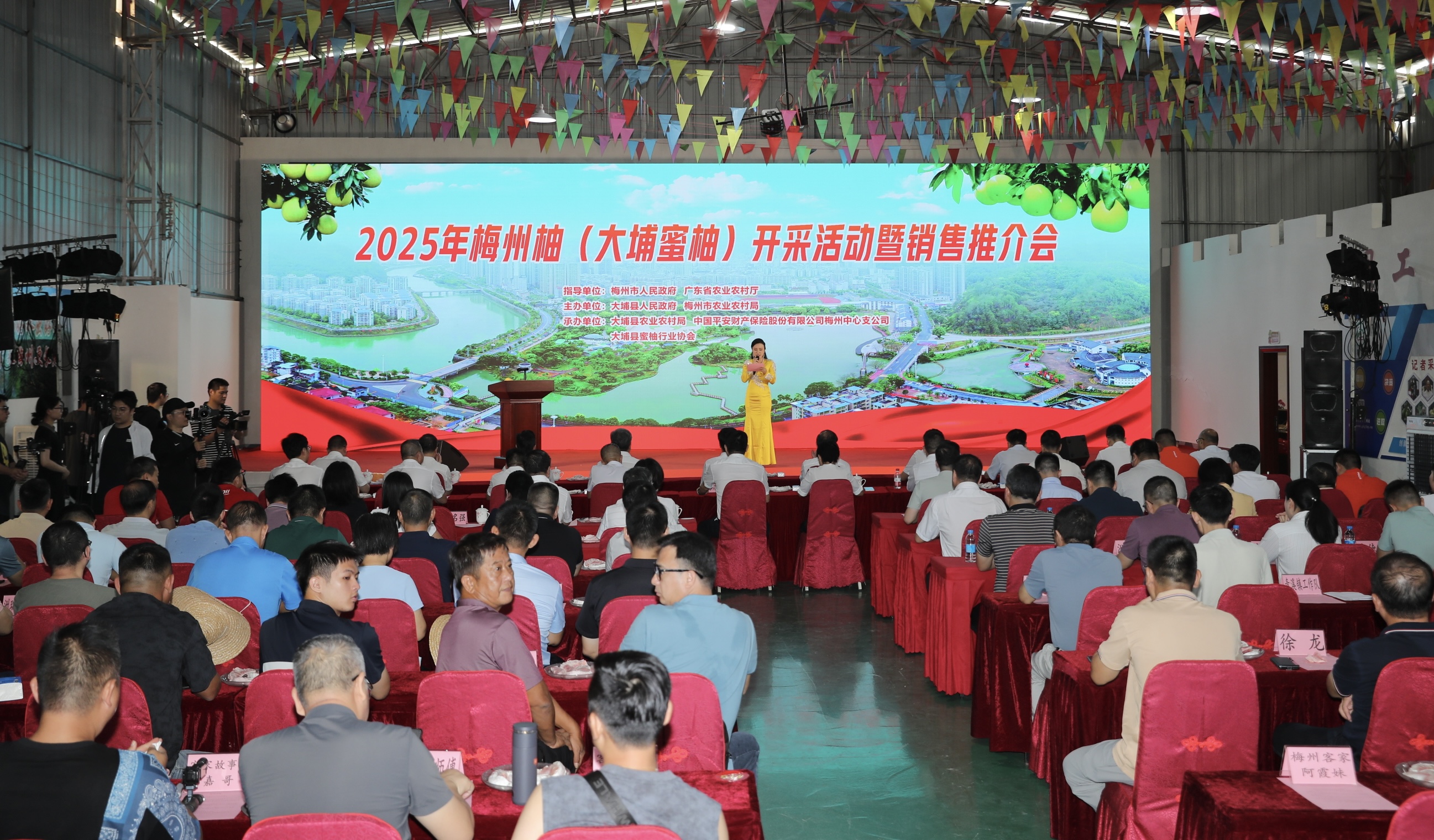 掌上梅州讯 金秋时节,柚果飘香。9月15日上午,“2025年梅州柚(大埔蜜柚)开采活动暨销售推介会”在大埔县青溪镇溪口村高峰农业蜜柚种植基地举行。此次活动由大埔县人民政府、梅州市农业农村局主办 ,大埔县农业农村局、中国平安财产保险股份有限公司梅州中心支公司、大埔县蜜柚行业协会承办,吸引了众多业内人士、媒体及网络达人齐聚一堂,共同见证大埔蜜柚这一丰收盛事。广东省农业农村厅二级巡视员陈荣、梅州市副市长胡学冬参加活动。