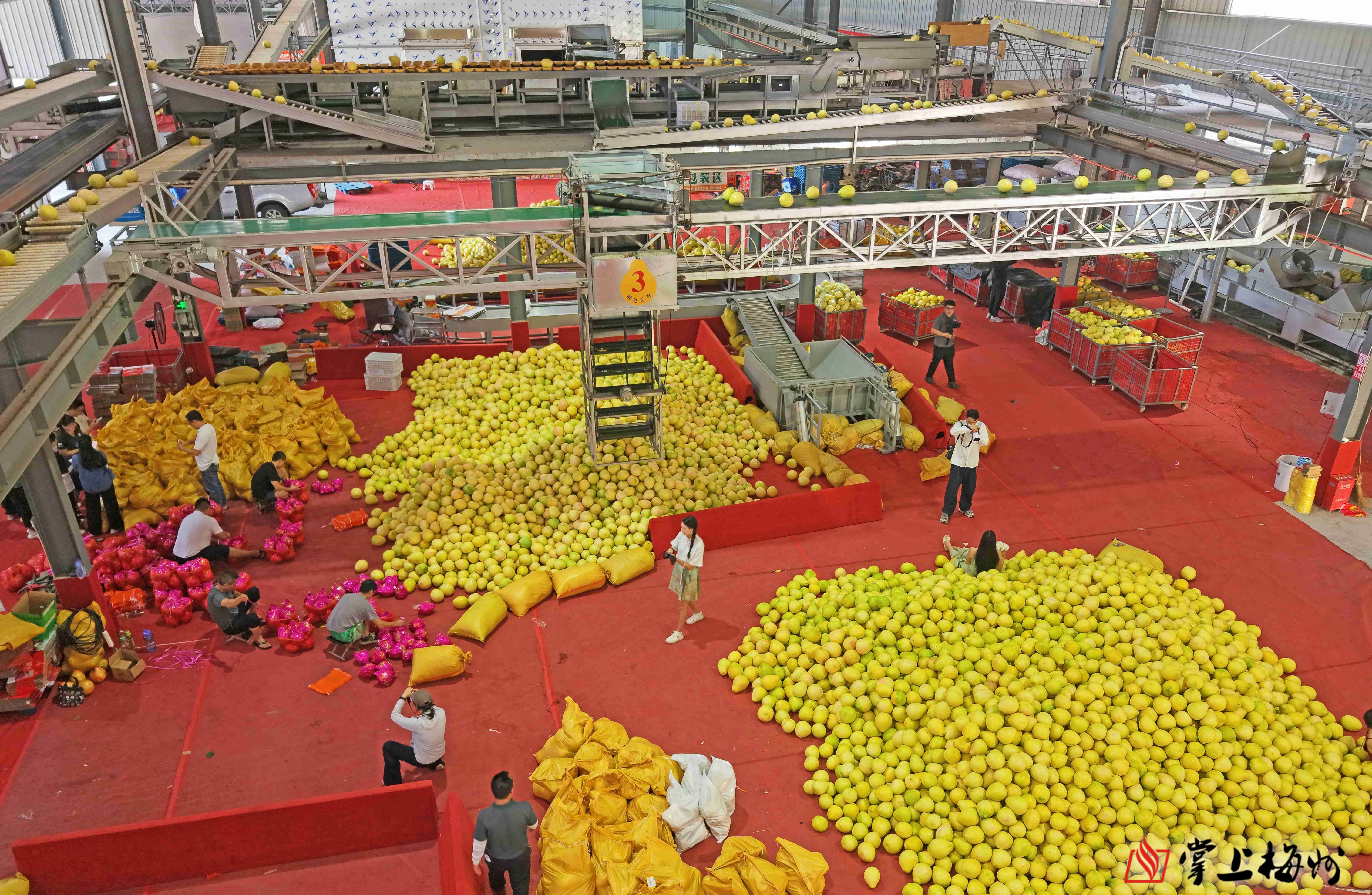 在梅州万川千红农业发展有限公司基地,大批蜜柚正在被分拣、打包。