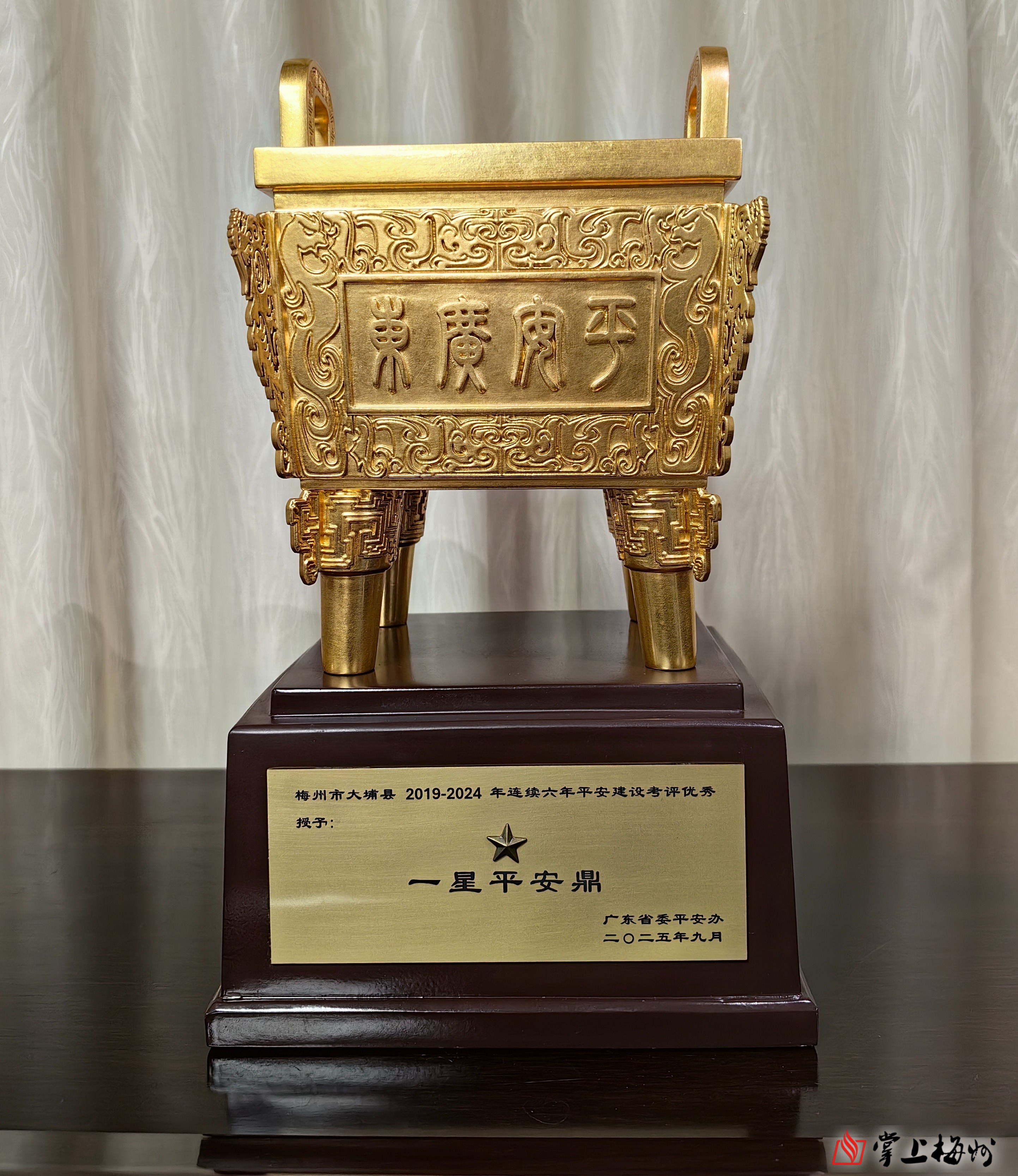 近日,2025年平安广东建设工作会议在广州召开,大埔县凭借连续6年平安梅州建设考评优秀的亮眼成绩,荣获“一星平安鼎”。“一星平安鼎”的背后是大埔县深耕平安建设、统筹高质量发展与高水平安全的实践,也是坚持发展新时代“枫桥经验”、走出特色平安建设路径的结果。如今,大埔县群众安全感、政法工作满意度稳居全省前列,“平安大埔”已成为响当当的名片。