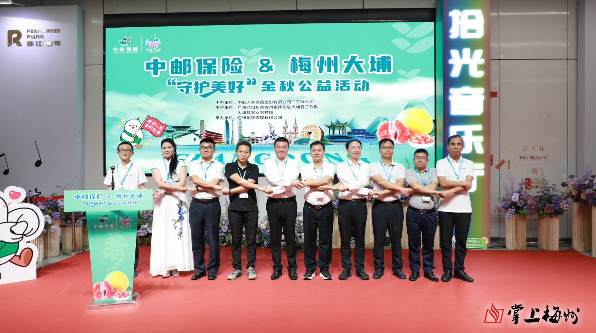 启动仪式上,中邮保险广东分公司党委书记、总经理李波,大埔县副县长、“百千万工程” 帮扶协作驻大埔县工作队副队长罗飞腾等领导嘉宾共同登台启动“守护美好、中邮相伴”助力大埔蜜柚专项活动,标志着专项助农行动的正式开启,更象征着政企社多方力量携手,为大埔农产品“走出去”搭建起坚实桥梁。