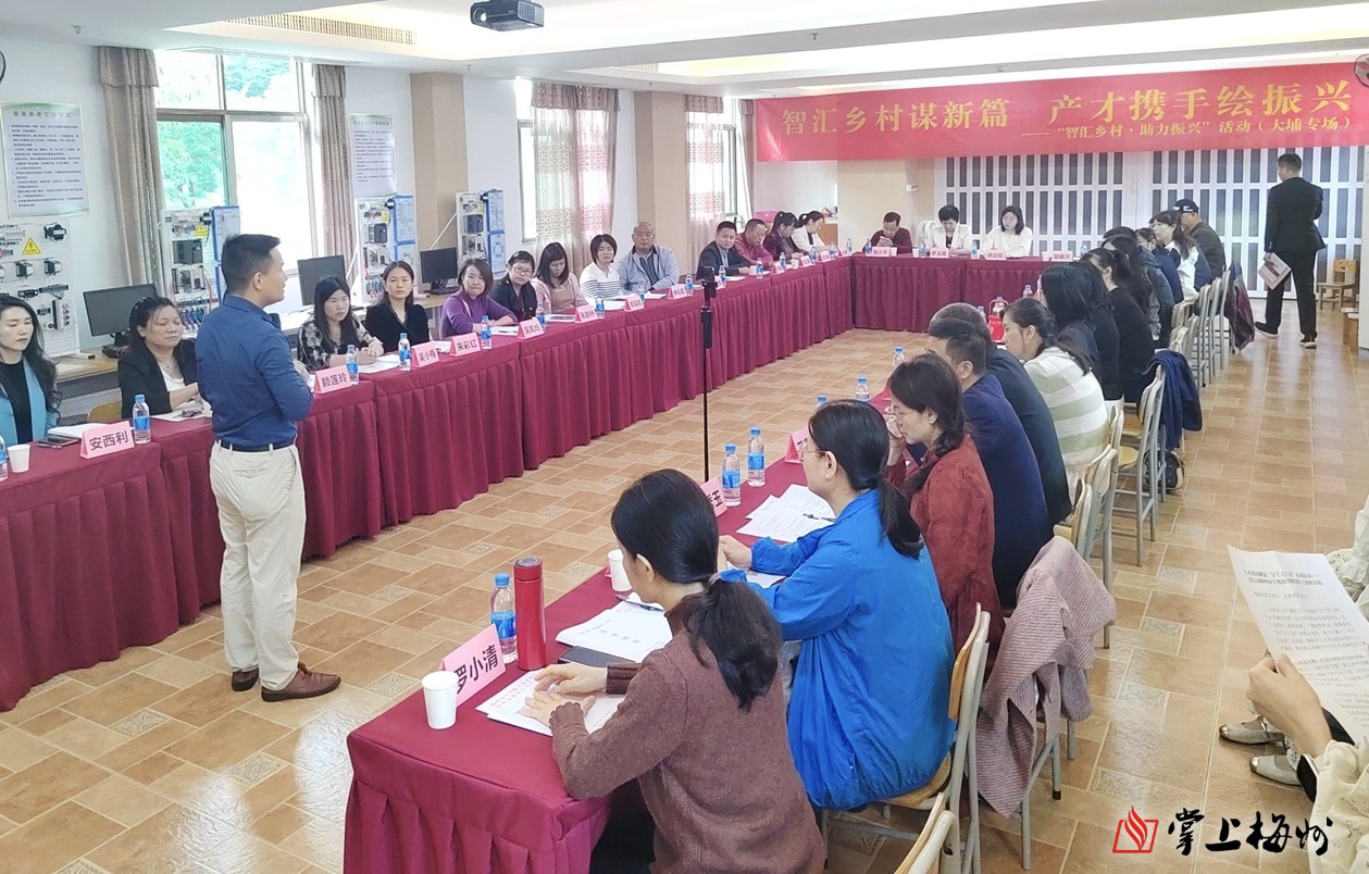 掌上梅州讯 10月24日,“智汇乡村·助力振兴”活动(大埔专场)举行。大埔县委组织部、大埔县人社局、大埔县关工委、梅州市新农人人才驿站、大埔县乡村振兴人才驿站、邮政储蓄银行大埔县支行等单位代表,市县两级关工委农村创业青年联谊会会员代表、涉农从业者代表等40余人参加活动。